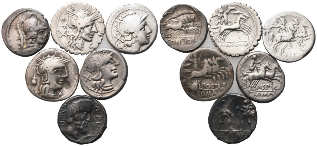 Precedente Lotto 488 Successivo Bertolami Fine Art - Máchova 838, Vinohrady 18, 120 00 Prague Auction 331 | RES PVBLICA RES PVBLICA giovedì 27 marzo 2025 ore 14:00 (UTC +01:00) Lot of 6 Roman Republican denarii Lot to be sold as is. No return.