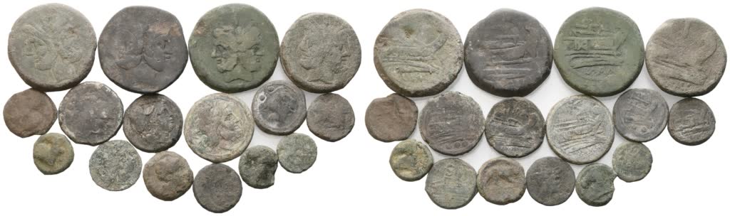Precedente Lotto 494 Successivo Bertolami Fine Art - Máchova 838, Vinohrady 18, 120 00 Prague Auction 331 | RES PVBLICA RES PVBLICA giovedì 27 marzo 2025 ore 14:00 (UTC +01:00) Lot of 16 Roman Republican Æ coins Lot to be sold as is. No return.