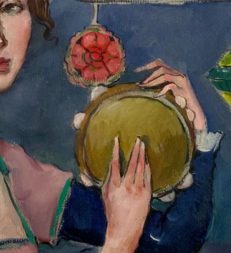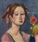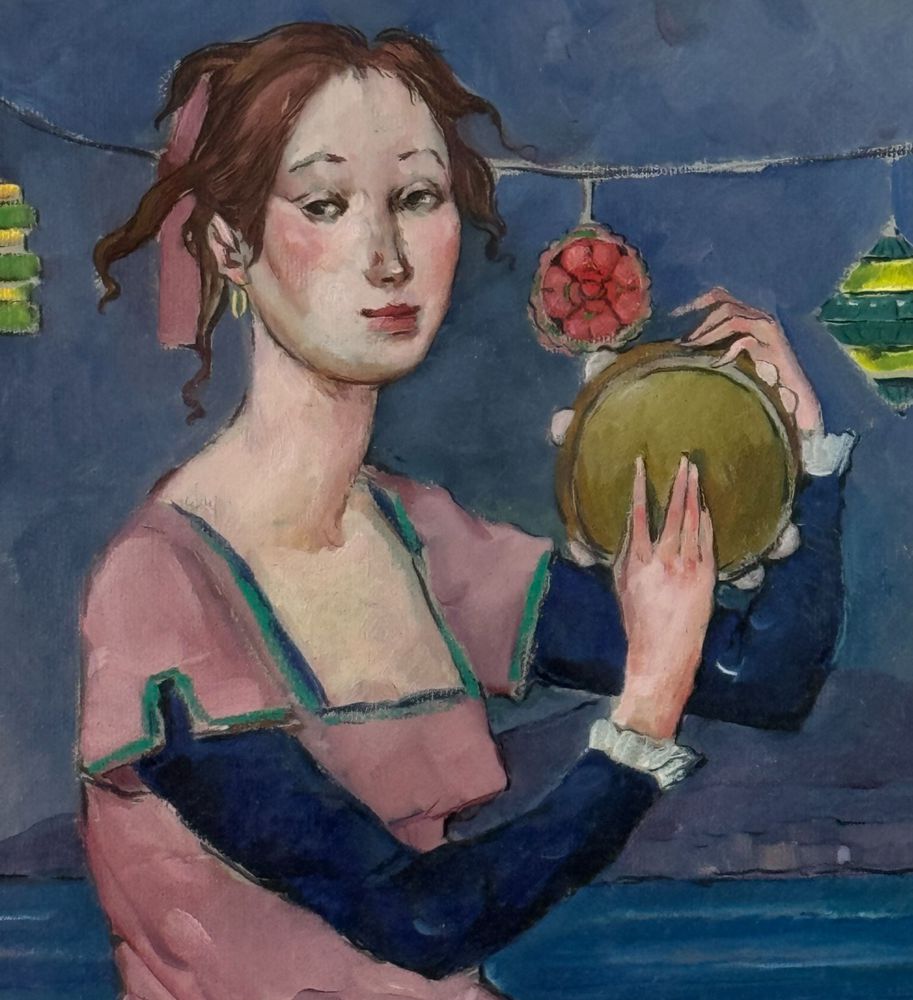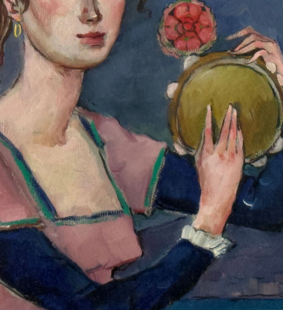 Dipinto olio su tela, periodo XX secolo, scuola Italiana, raffigurante Ritratto di donna con tamburella con Vesuvio sullo sfondo. Dimensioni compreso cornice: 41x51 cm. Dimensioni interno cornice: 25x35 cm. Reca firma in basso a sinistra Ciro Adrian Ciavolino. Opera in buone condizioni.