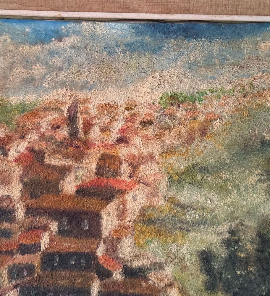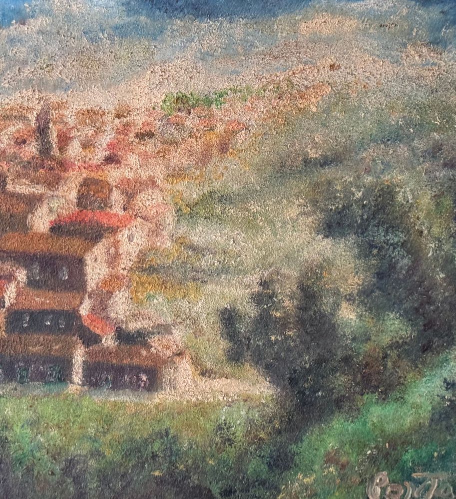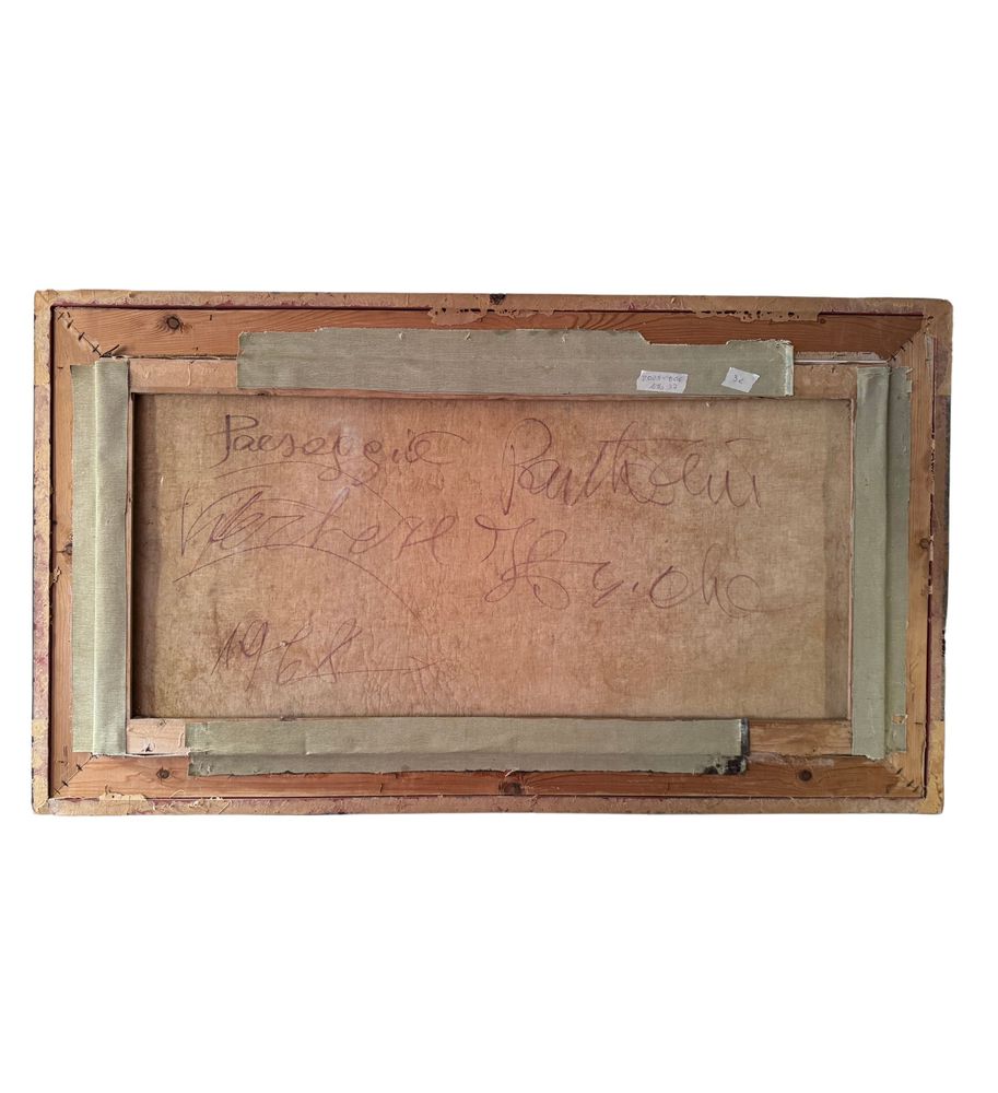 Dipinto olio su tela, periodo XX secolo scuola Italiana, raffigurante Paesaggio. Dimensioni compreso cornice: 67x117 cm. Dimensioni interno cornice: 50x100 cm. Reca firma in basso a destra da artista non identificato. Opera in buone condizioni.