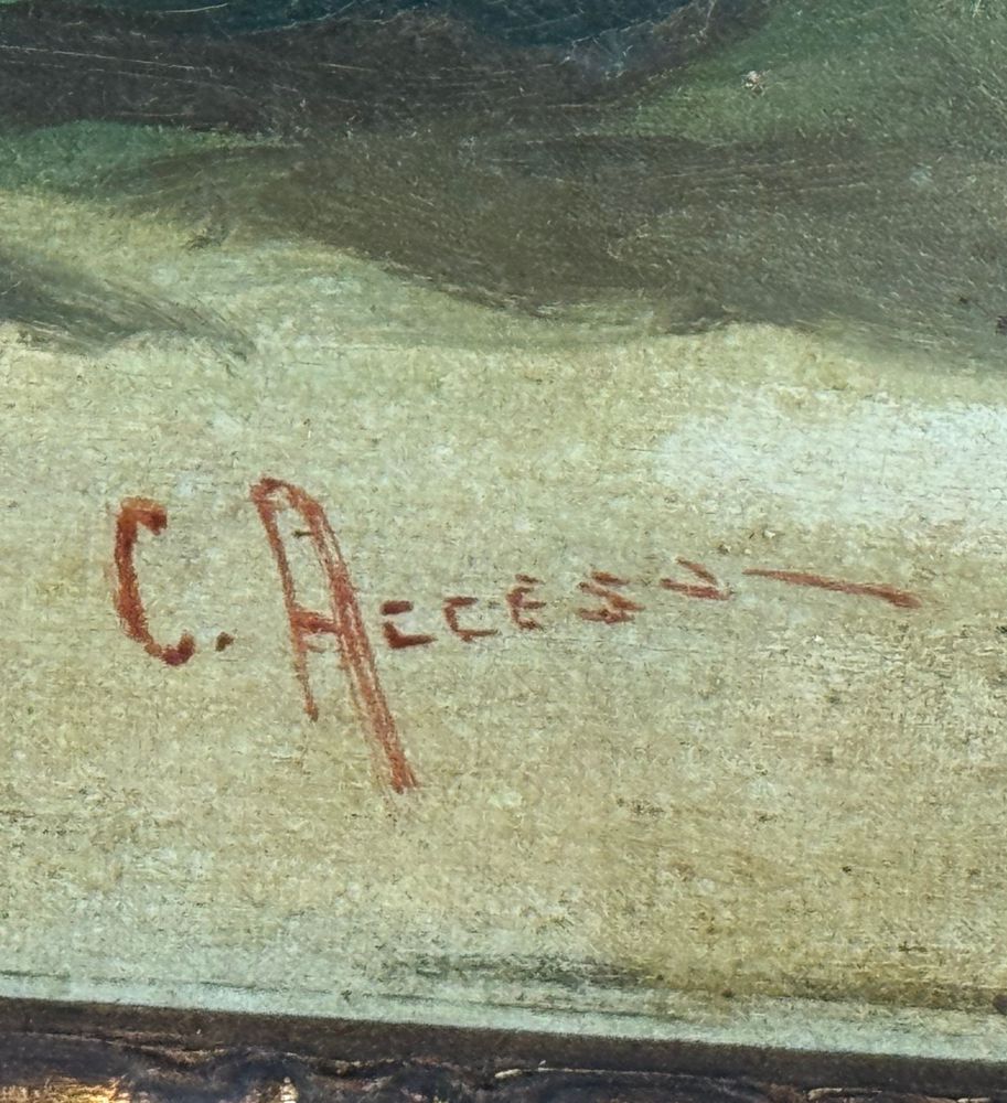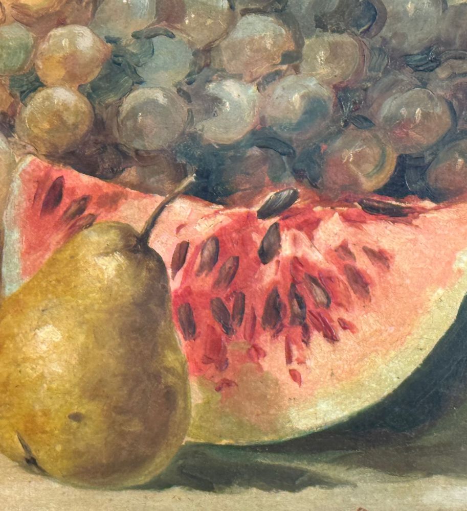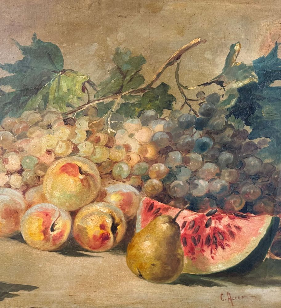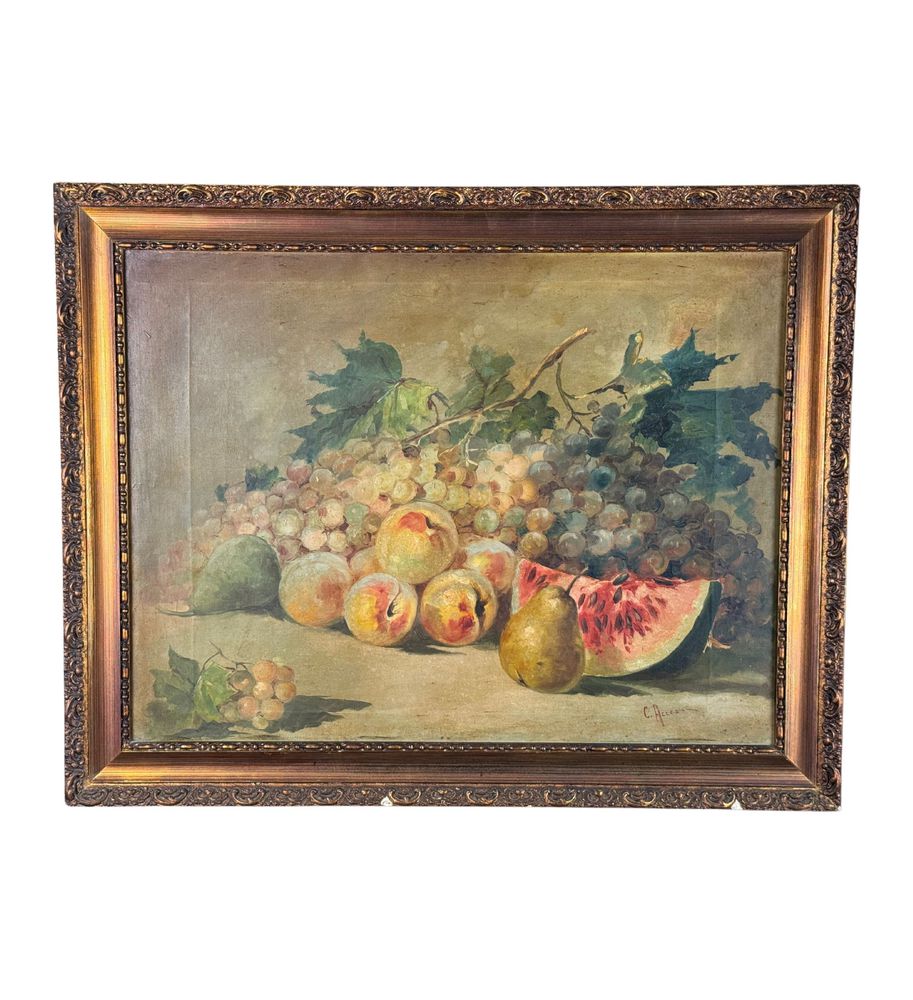 Dipinto olio su tela, periodo XX secolo scuola Italiana, raffigurante Natura morta. Dimensioni compreso cornice: 84x67 cm. Dimensioni interno cornice: 72x55 cm. Reca firma in basso a destra da Carmine Acceso. Opera in buone condizioni con lievi segni di vissuto come da foto allegate.