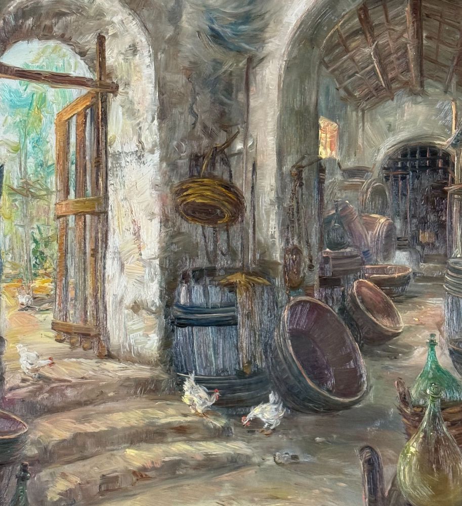 Dipinto olio su tavola, periodo XX secolo, scuola Italiana, raffigurante Interno di stalla. Dimensioni compreso cornice: 75x96 cm. Dimensioni interno cornice: 50x71 cm. Reca firma in basso a sinistra Antonio Martucci. Opera in buone condizioni e di ottima qualità artistica.