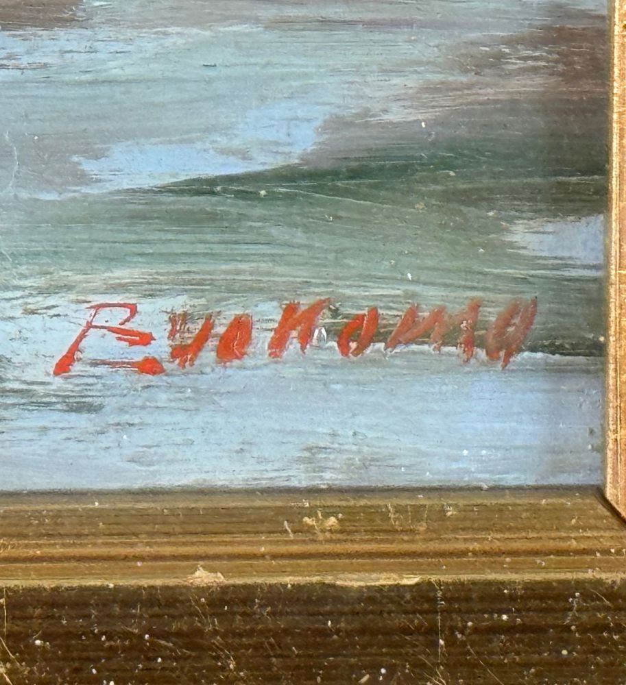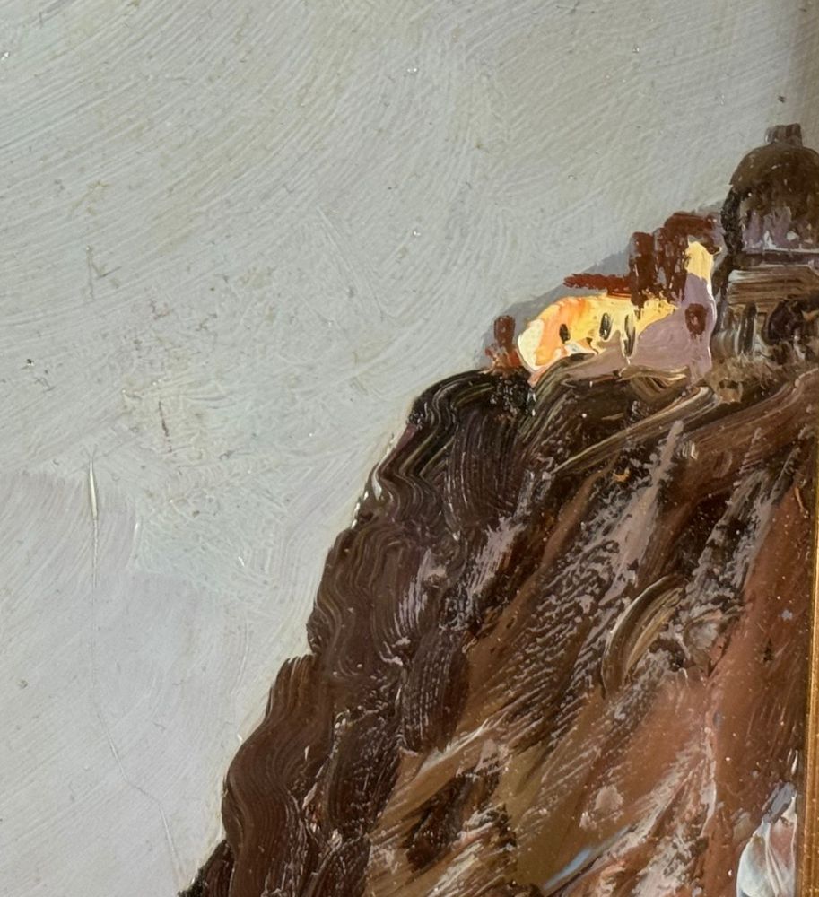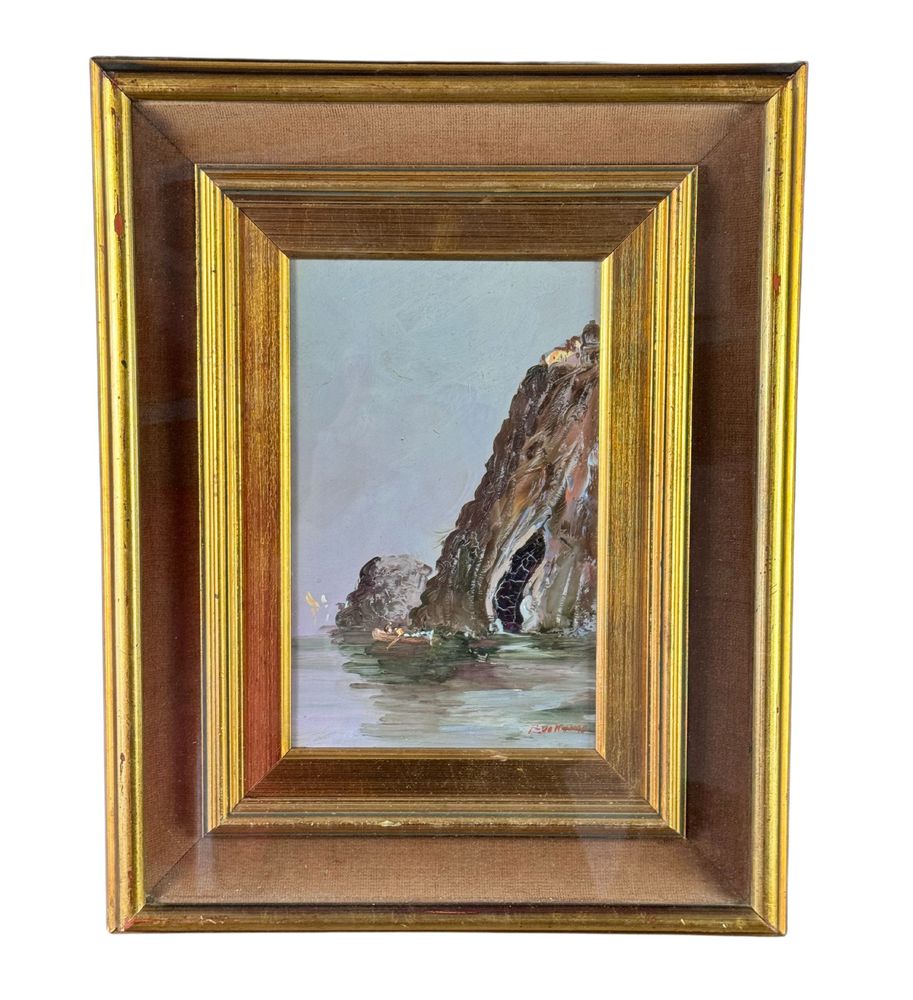 Dipinto olio su pannello, periodo XX secolo scuola Italiana, raffigurante Scorcio di marina partenopea. Dimensioni compreso cornice: 40x50 cm. Dimensioni interno cornice: 20x30 cm. Reca firma in basso a destra da artista non identificato. Opera in buone condizioni.