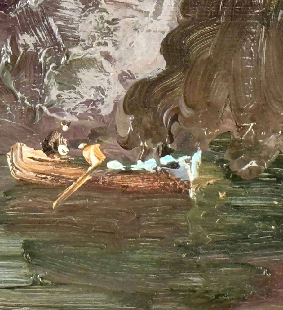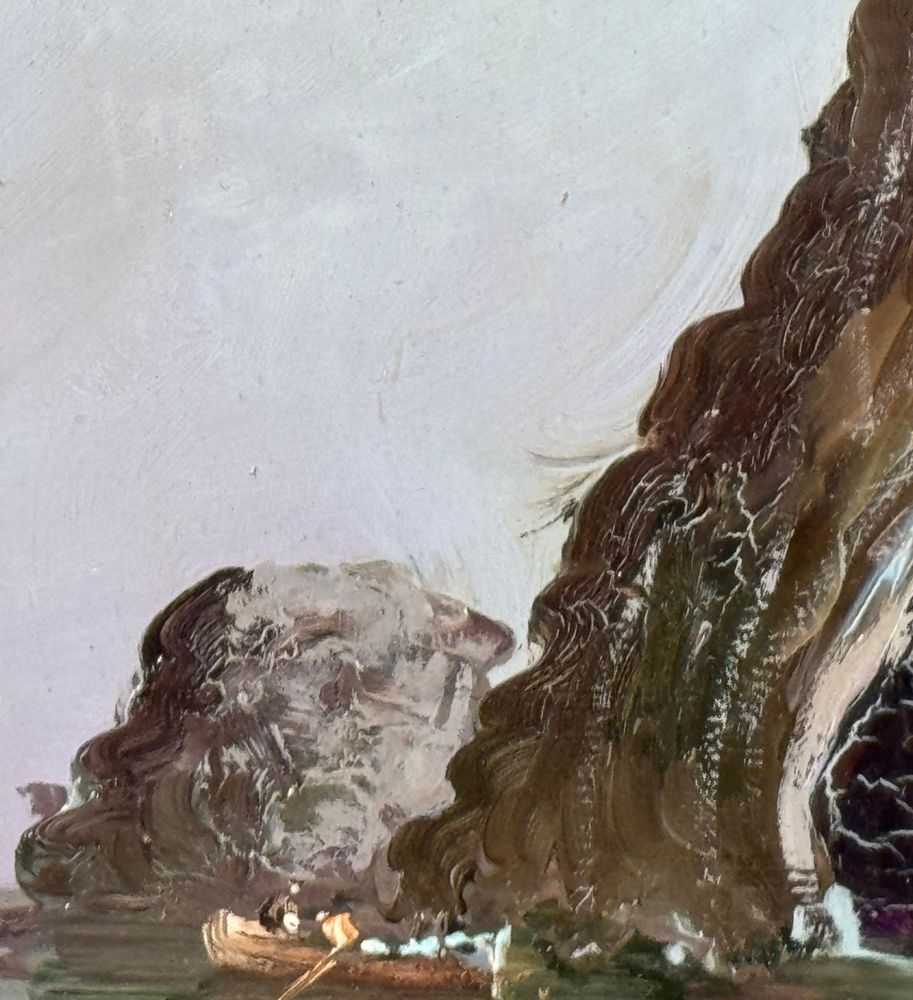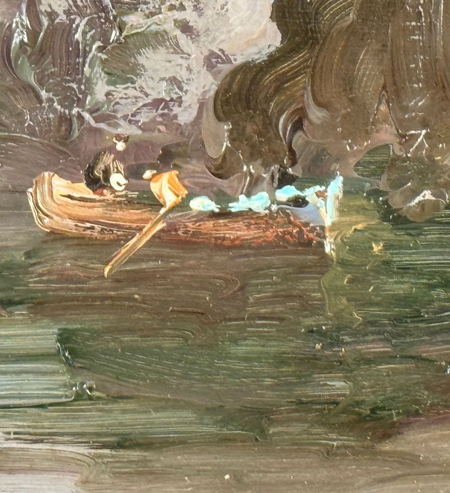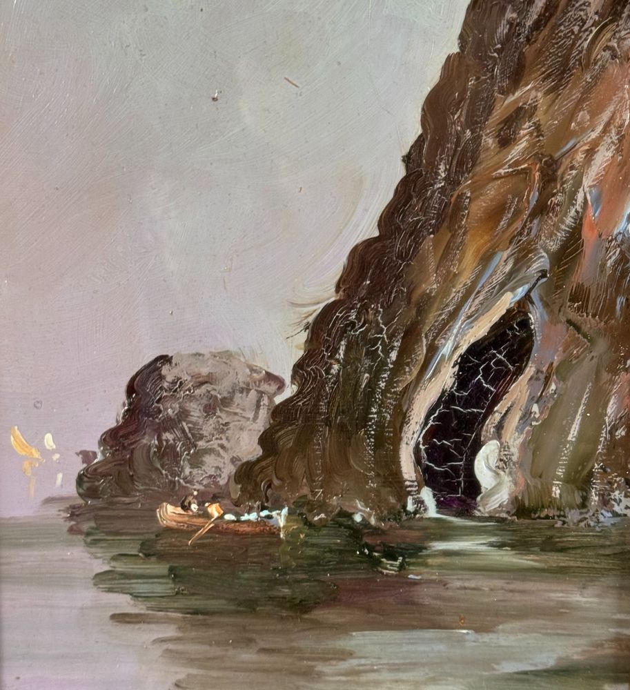 Dipinto olio su pannello, periodo XX secolo scuola Italiana, raffigurante Scorcio di marina partenopea. Dimensioni compreso cornice: 40x50 cm. Dimensioni interno cornice: 20x30 cm. Reca firma in basso a destra da artista non identificato. Opera in buone condizioni.