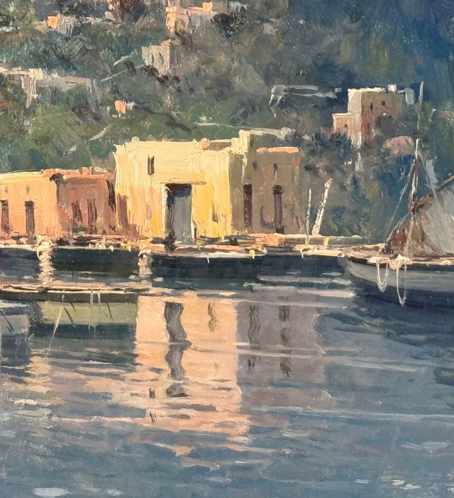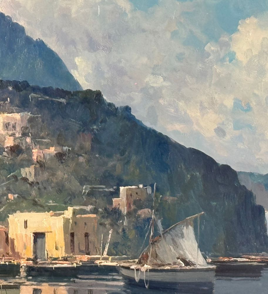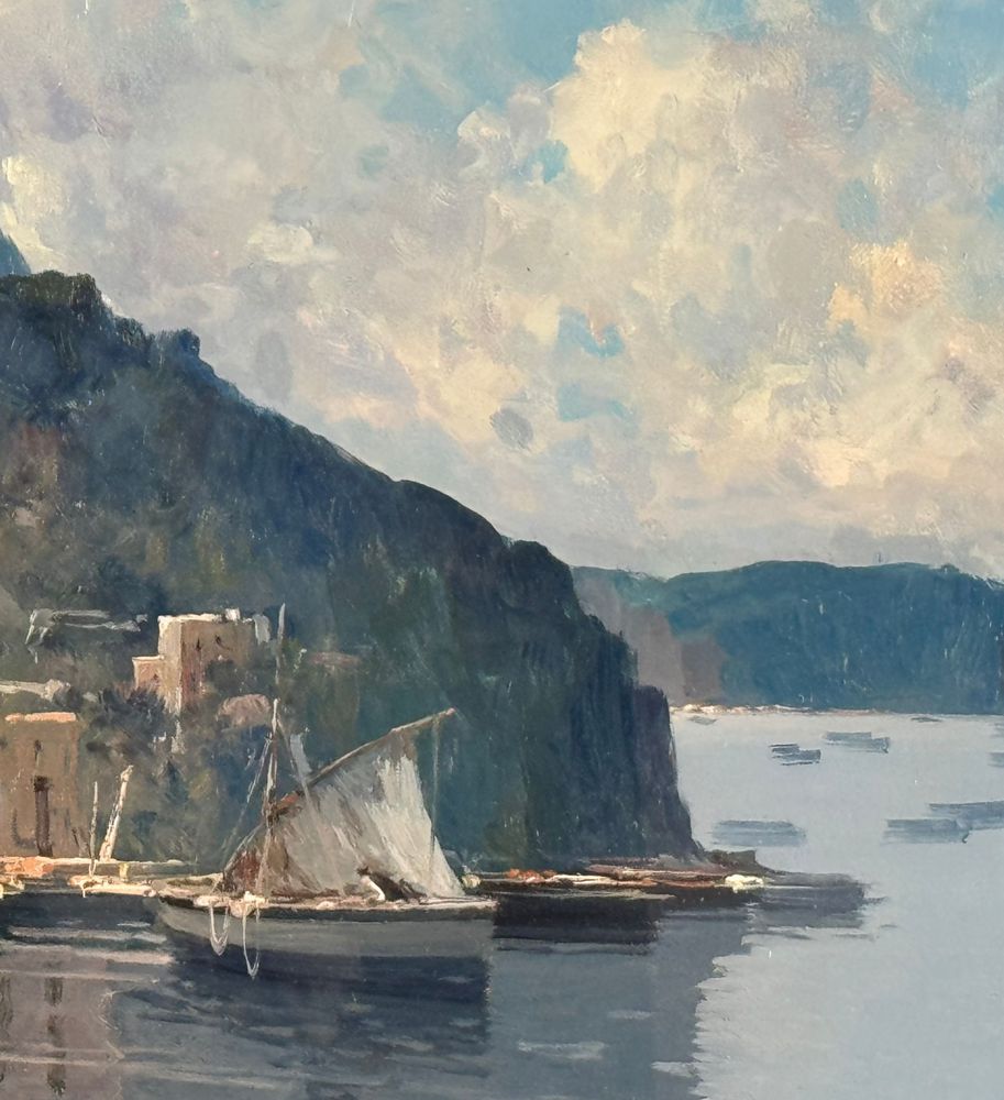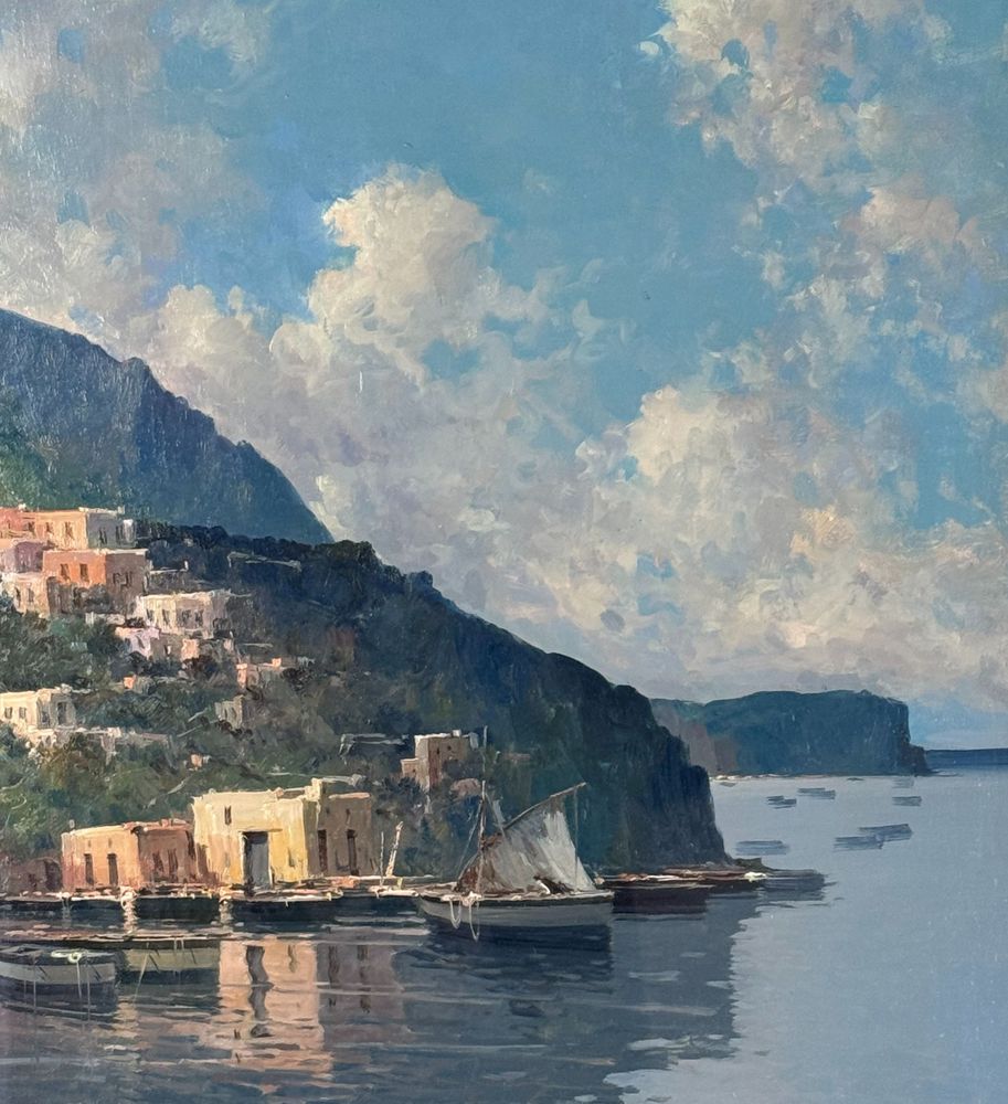 Dipinto olio su tavola, periodo XX secolo, scuola Italiana, raffigurante Scorcio di marina napoletana. Dimensioni compreso cornice: 65x75 cm. Dimensioni interno cornice: 50x40 cm. Reca firma in basso a sinistra Fortunato Fontana. Opera in buone condizioni.