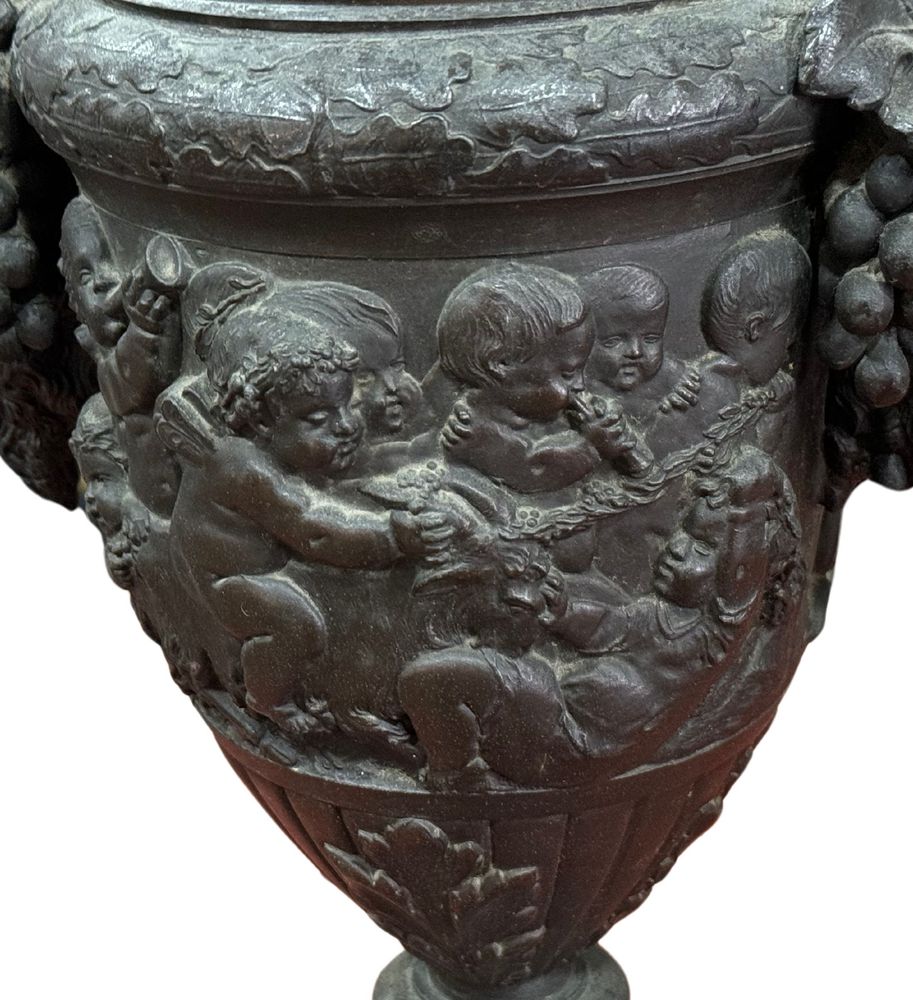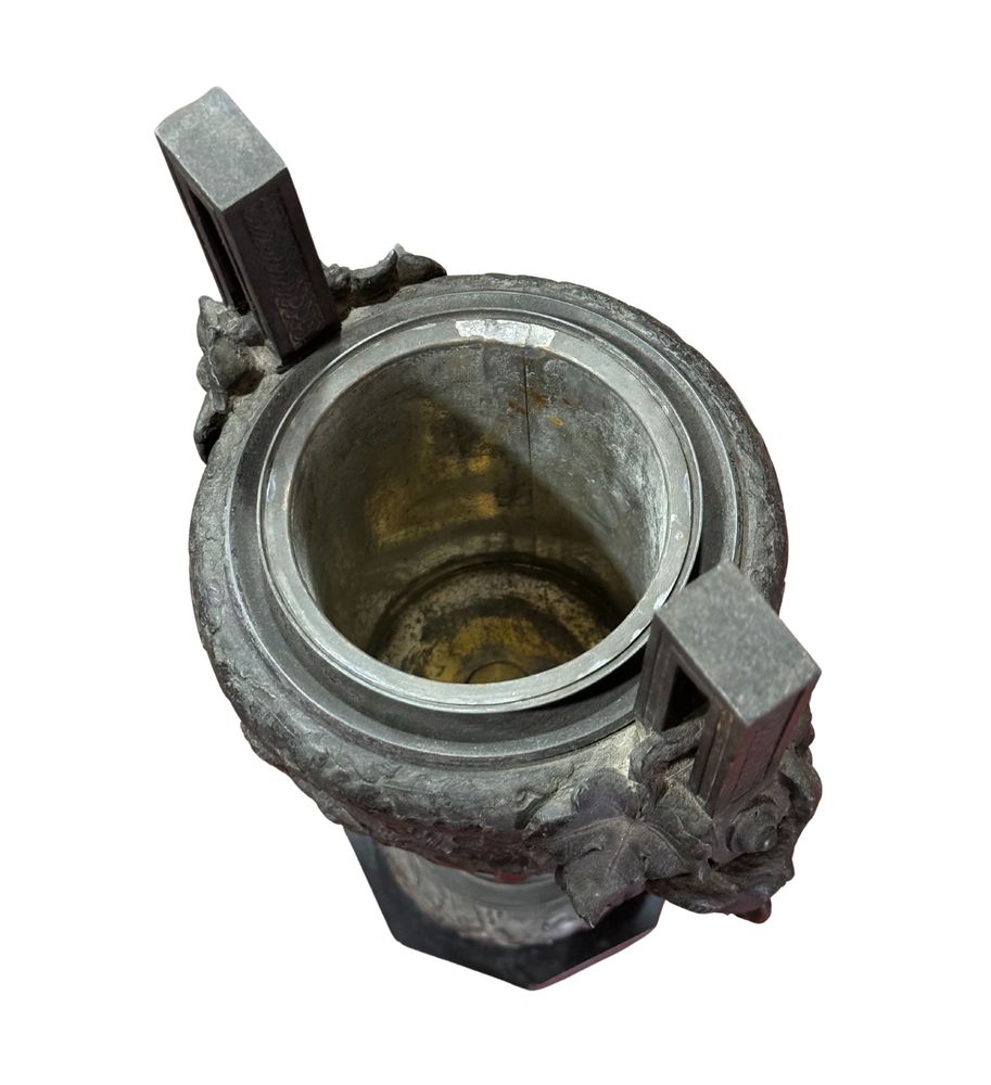 Coppia di caselle in antimonio patinato con decorazioni, periodo XIX secolo....