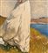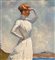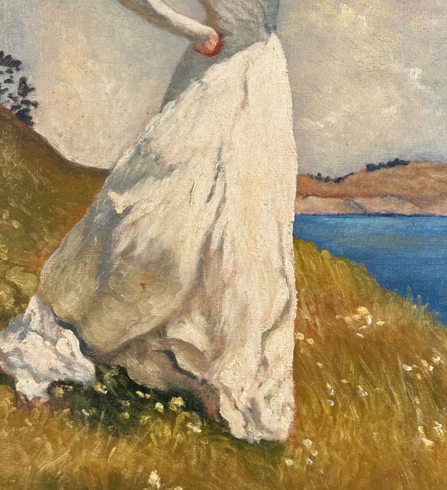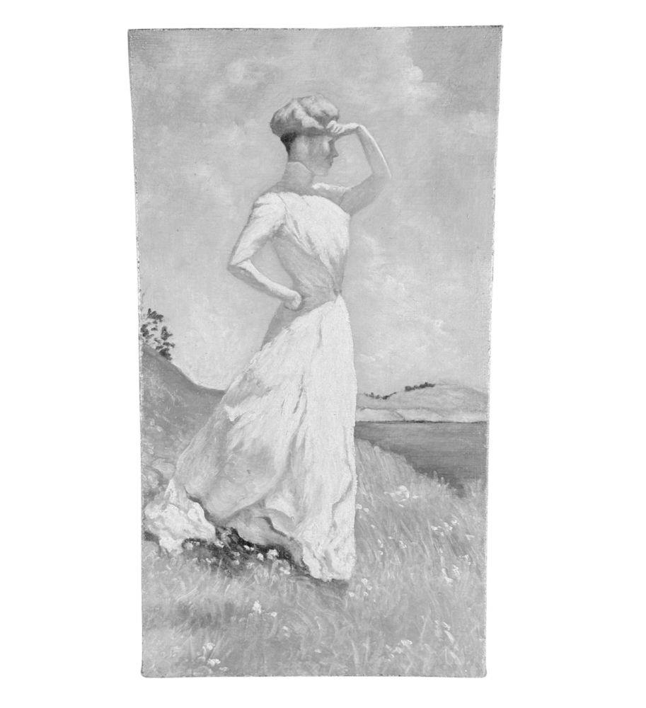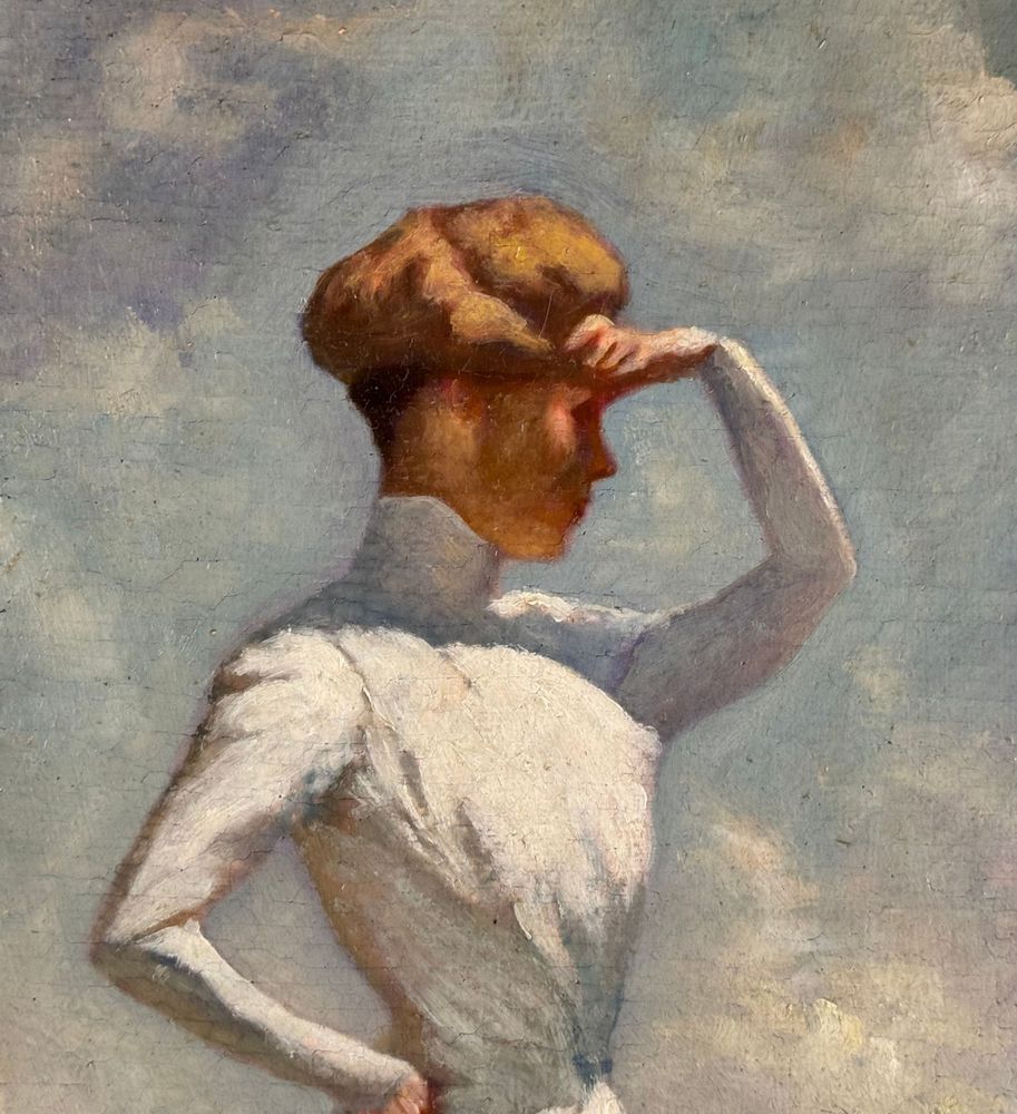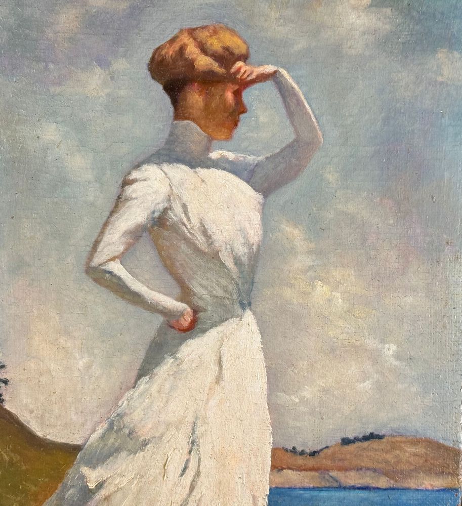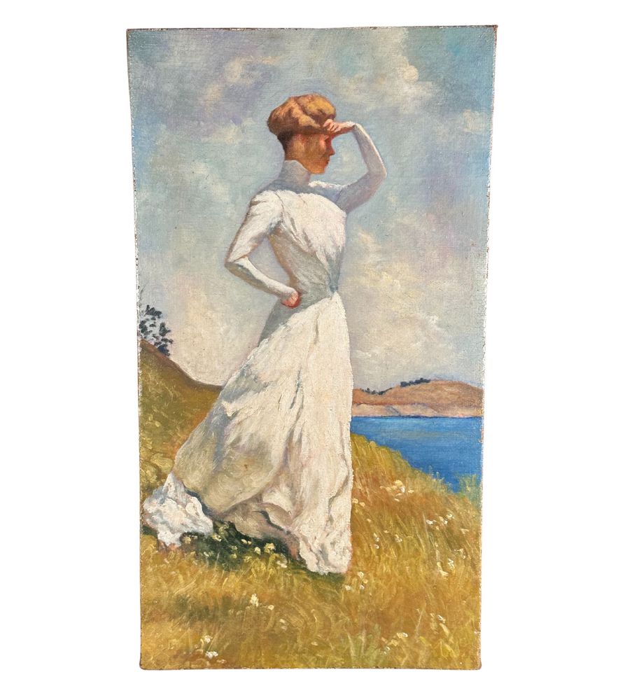Dipinto olio su tela, periodo XX secolo scuola Italiana, raffigurante Donna su marina. Omaggio a Frank Benson Dimensioni: 34x62,5 cm. Da artista anonimo. Opera in buone condizioni.