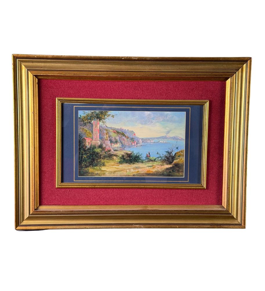 Dipinto olio su cartoncino, periodo XX secolo scuola Italiana, raffigurante Scorcio napoletano. Dimensioni compreso cornice: 56x42 cm. Dimensioni interno cornice: 34x20 cm. Artista anonimo. Opera in buone condizioni.