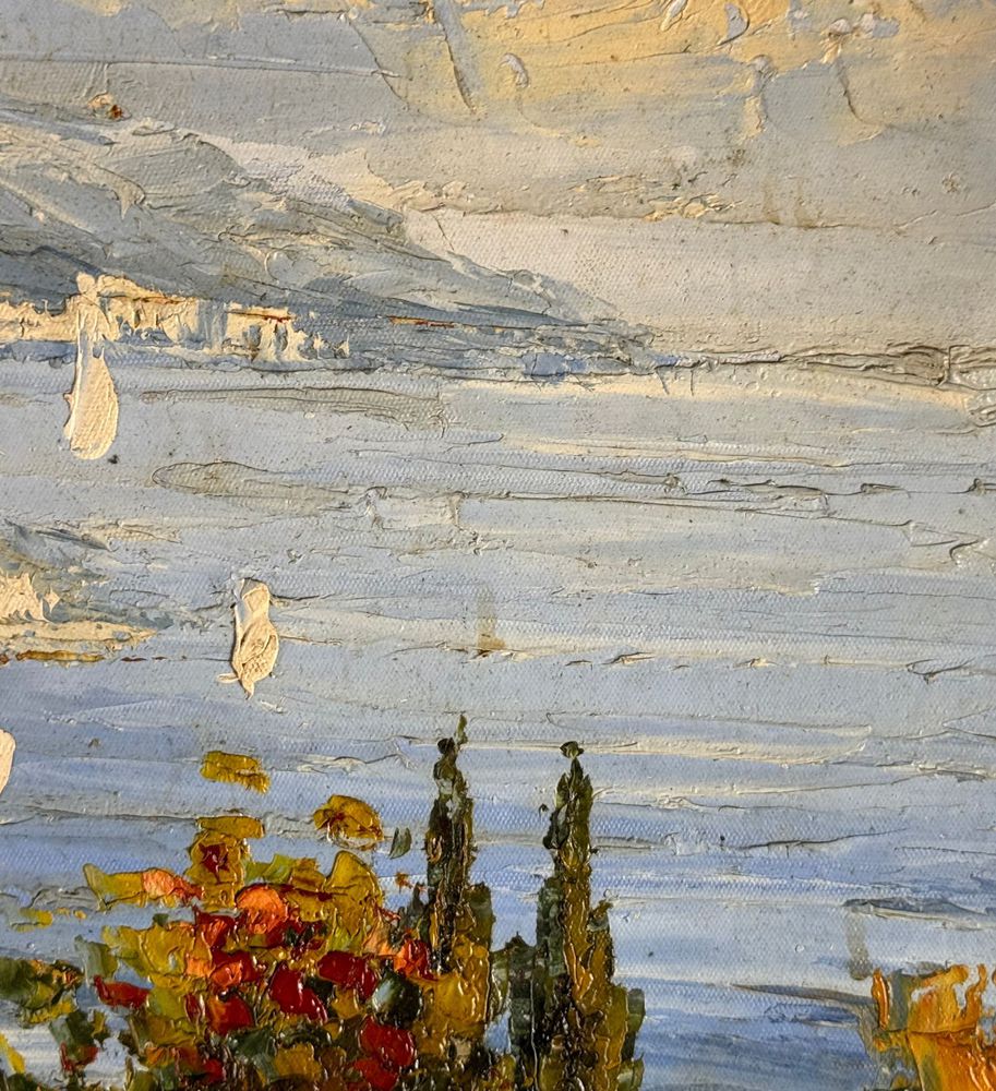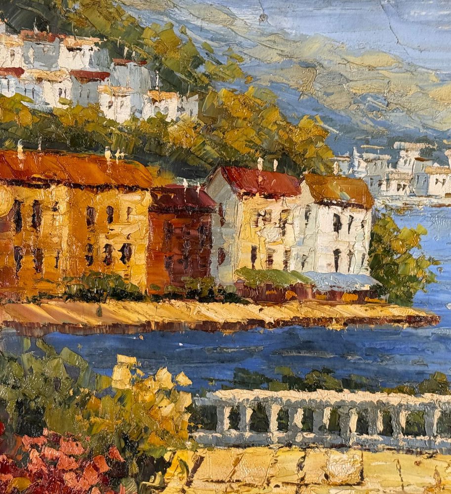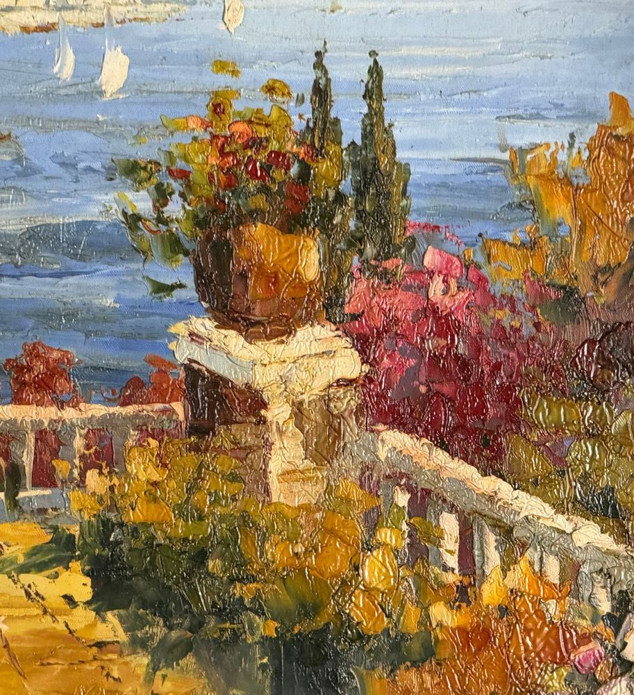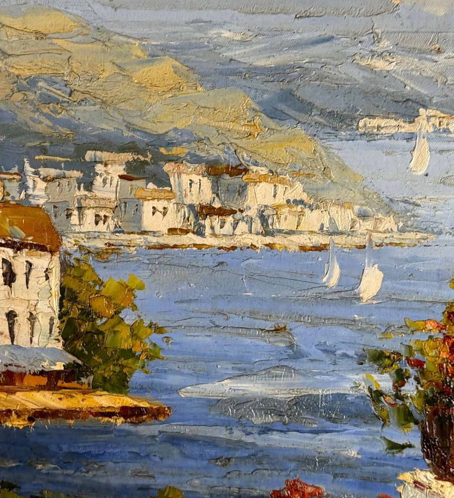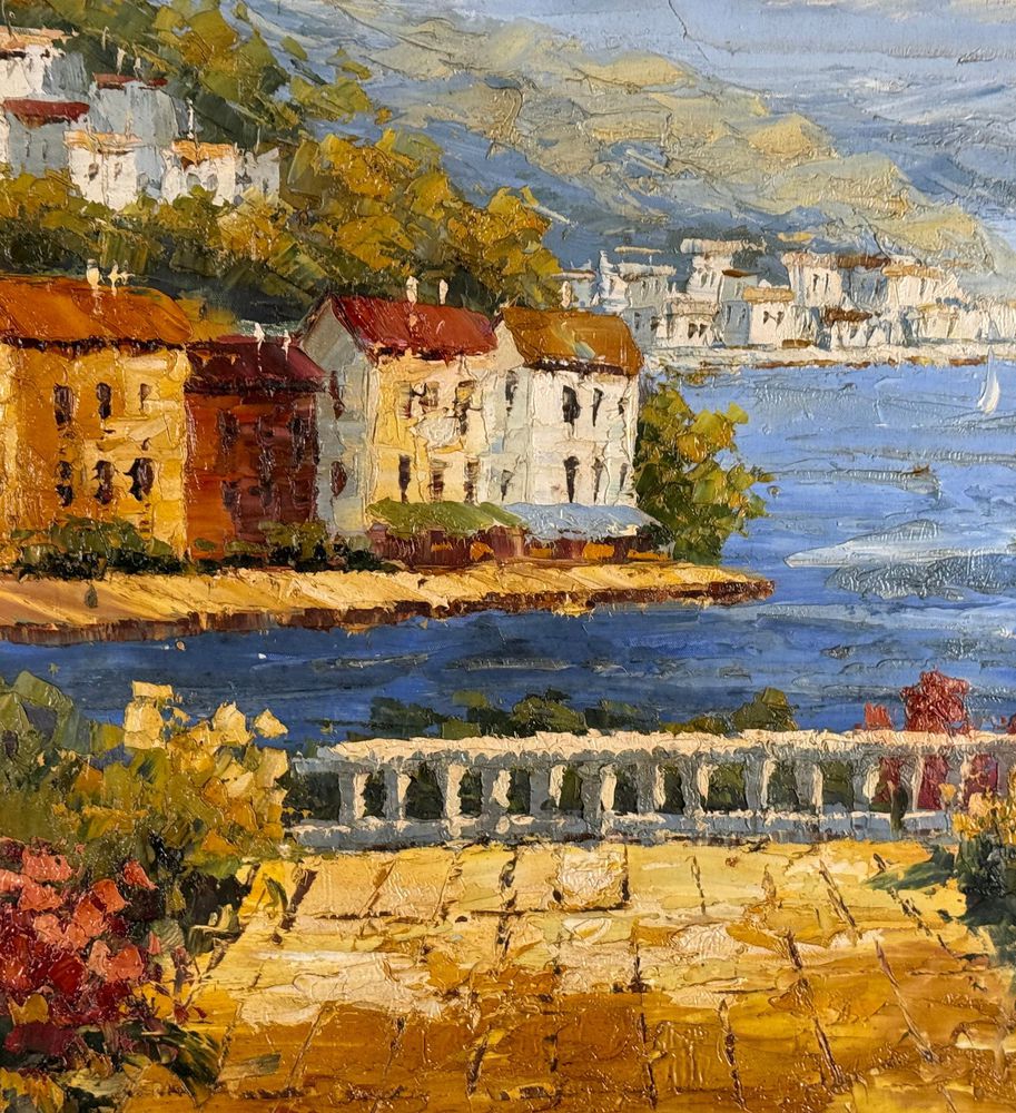 Dipinto olio su tela, periodo prima metà del XX secolo scuola Italiana, raffigurante Costiera. Dimensioni compreso cornice: 108x78 cm. Dimensioni interno cornice: 90x60 cm. Reca firma in basso a sinistra da artista non identificato. Opera in buone condizioni.