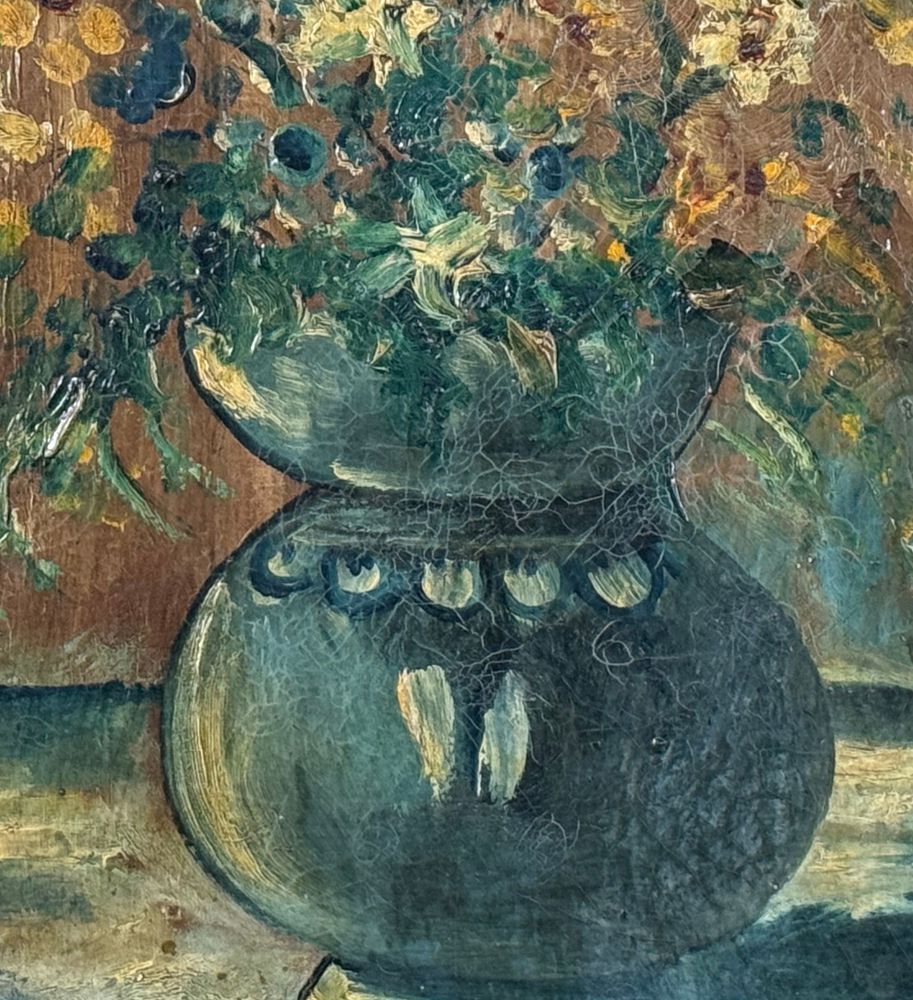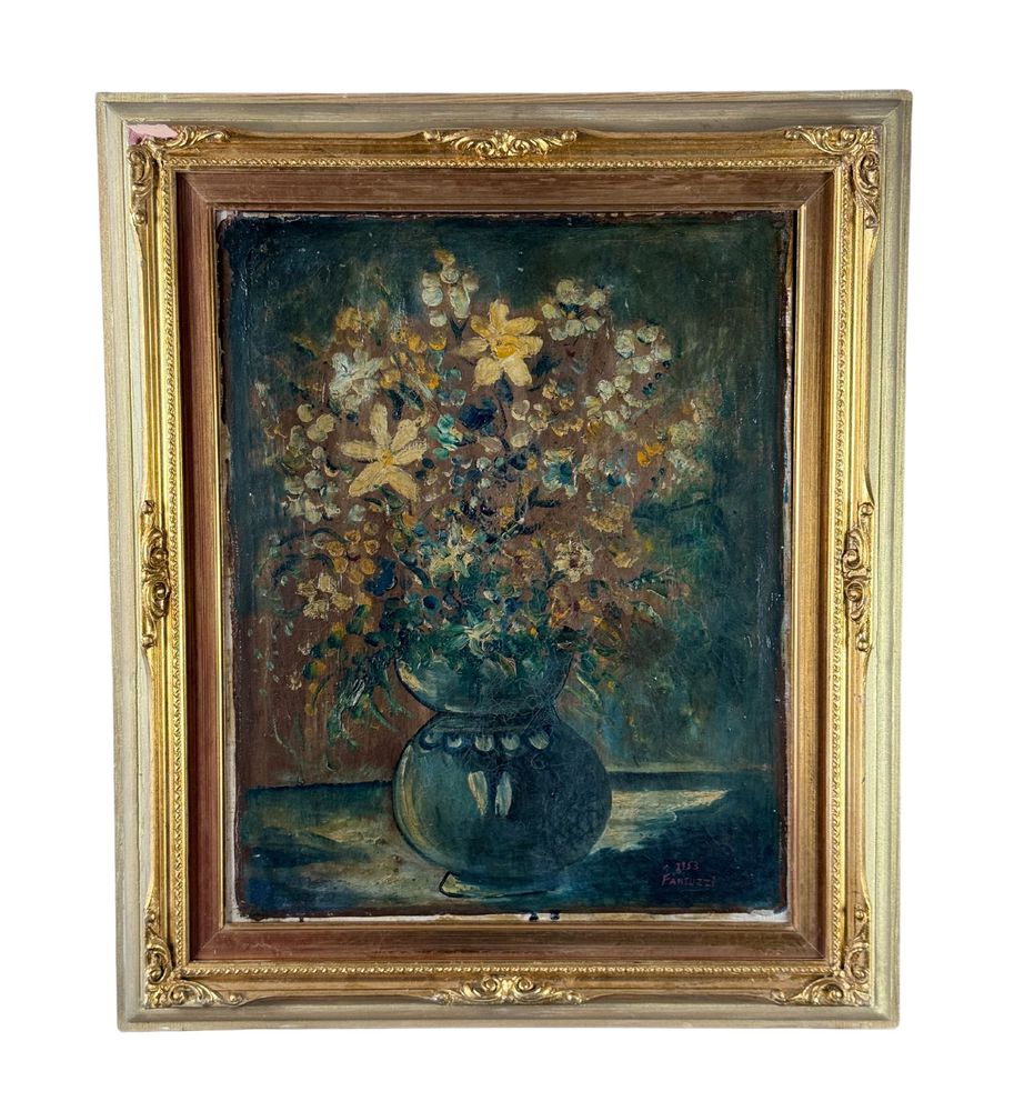 Dipinto olio su tela, periodo XX secolo scuola Italiana, raffigurante Vaso con fiori. Dimensioni compreso cornice: 55x65 cm. Dimensioni interno cornice: 40x50 cm. Reca firma in basso a destra da artista non identificato. Opera in buone condizioni con lievi segni di vissuto come da foto allegate.