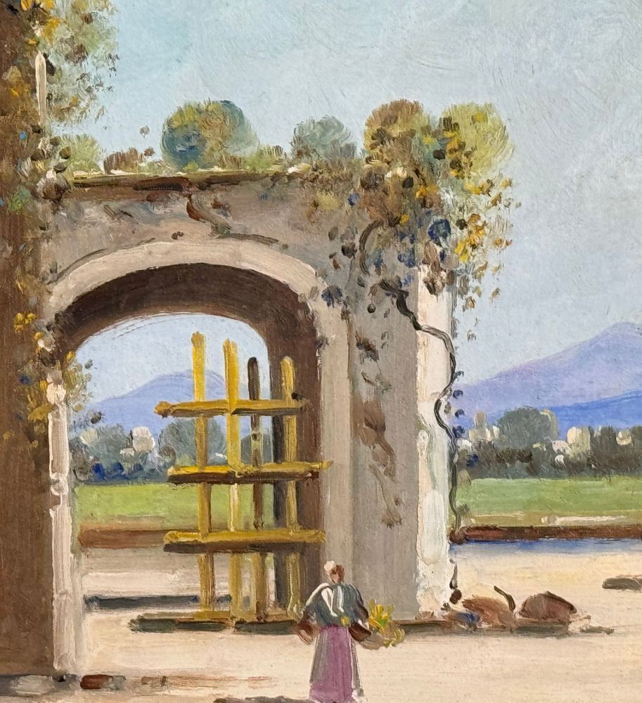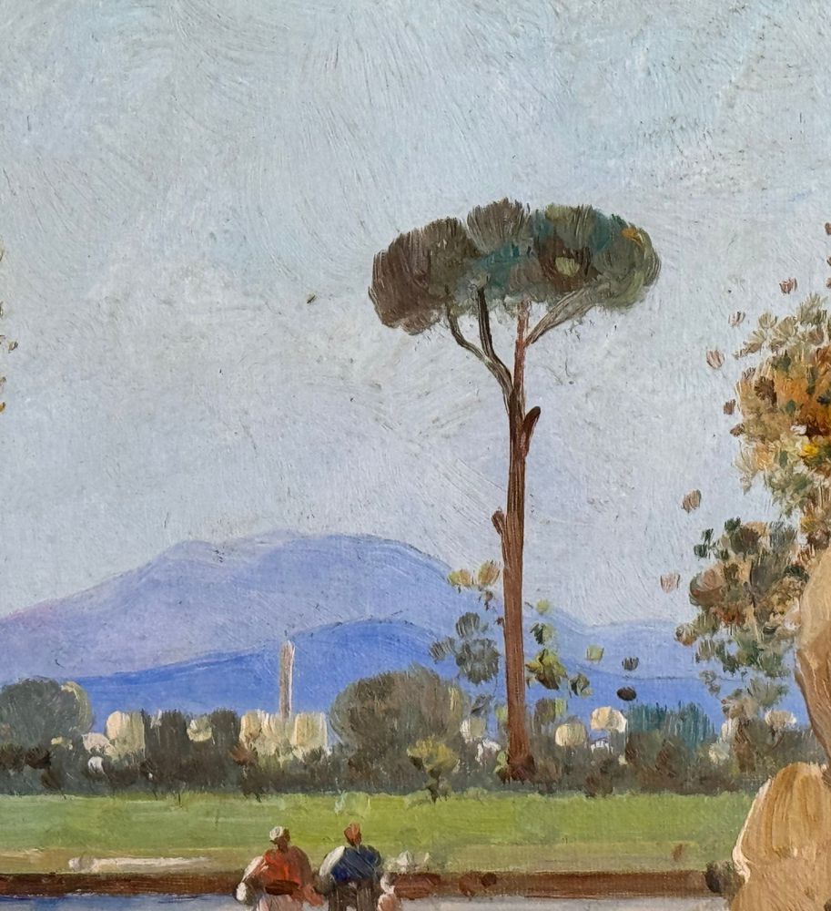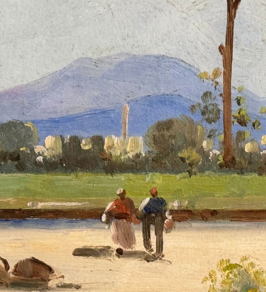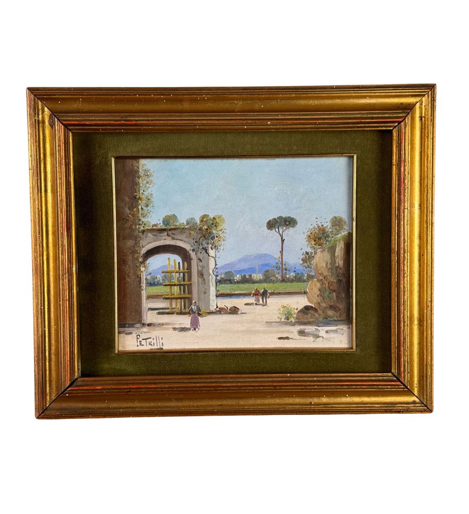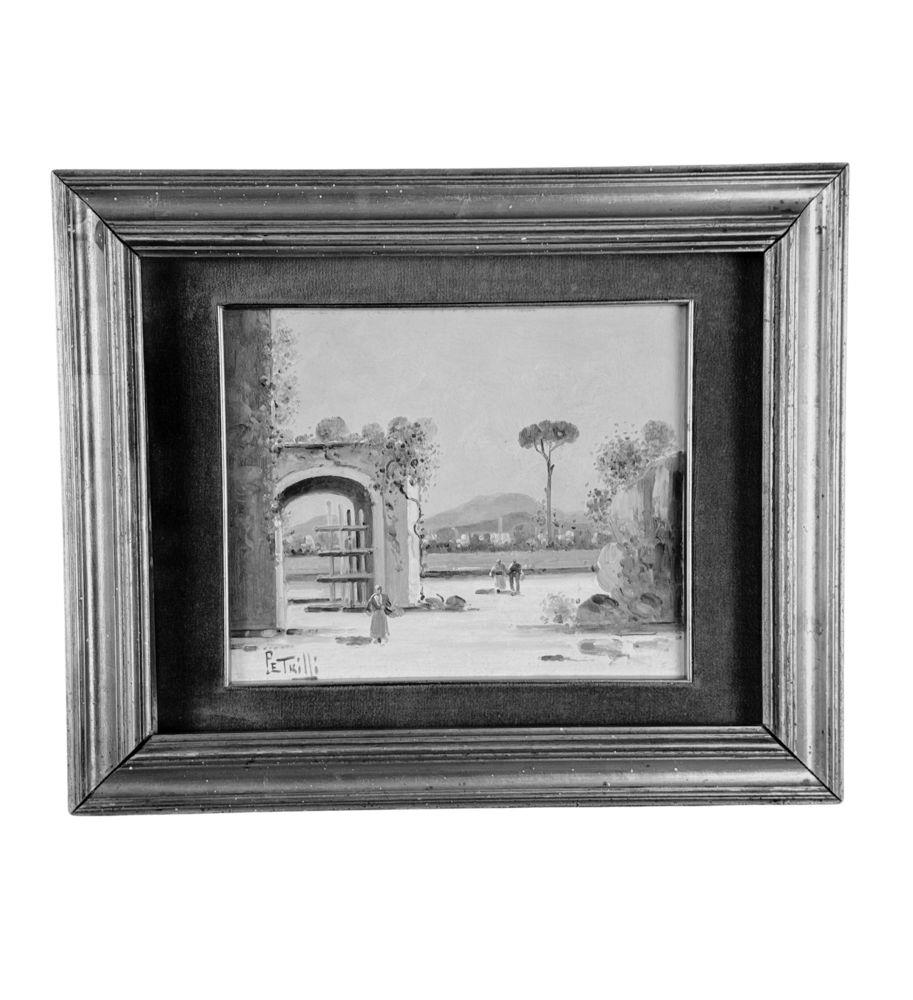Dipinto olio su tela, periodo XX secolo scuola Italiana, raffigurante Paesaggio. Dimensioni compreso cornice: 42x34 cm. Dimensioni interno cornice: 20x25 cm. Reca firma in basso a sinistra da artista non identificato. Opera in buone condizioni.