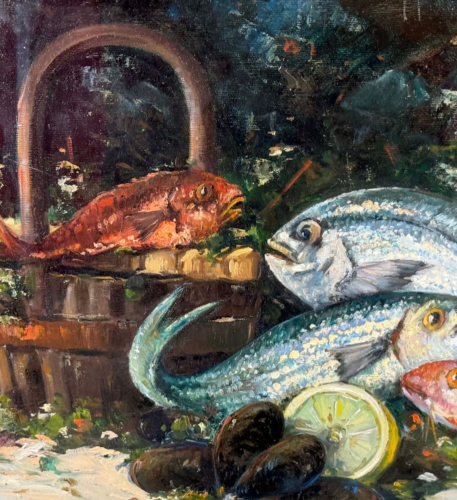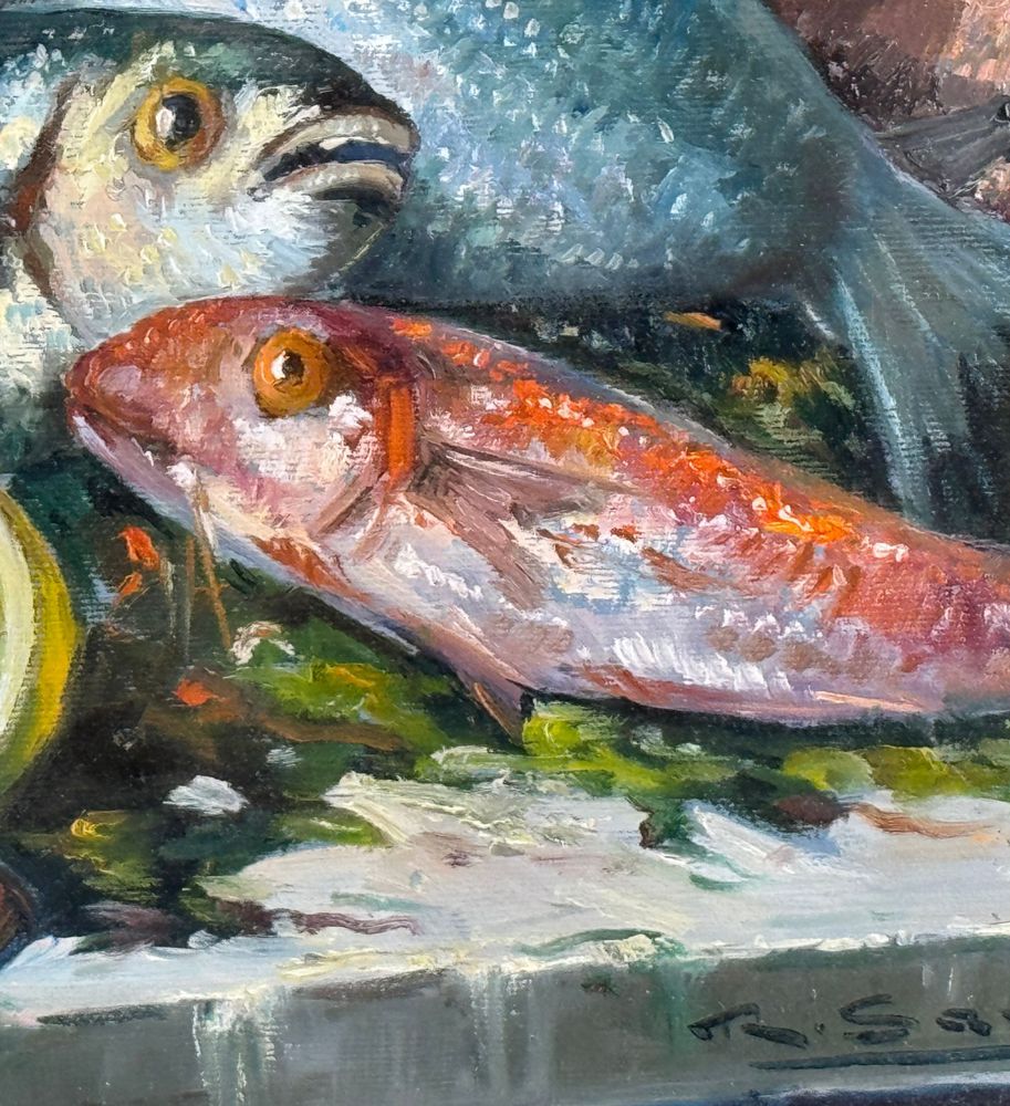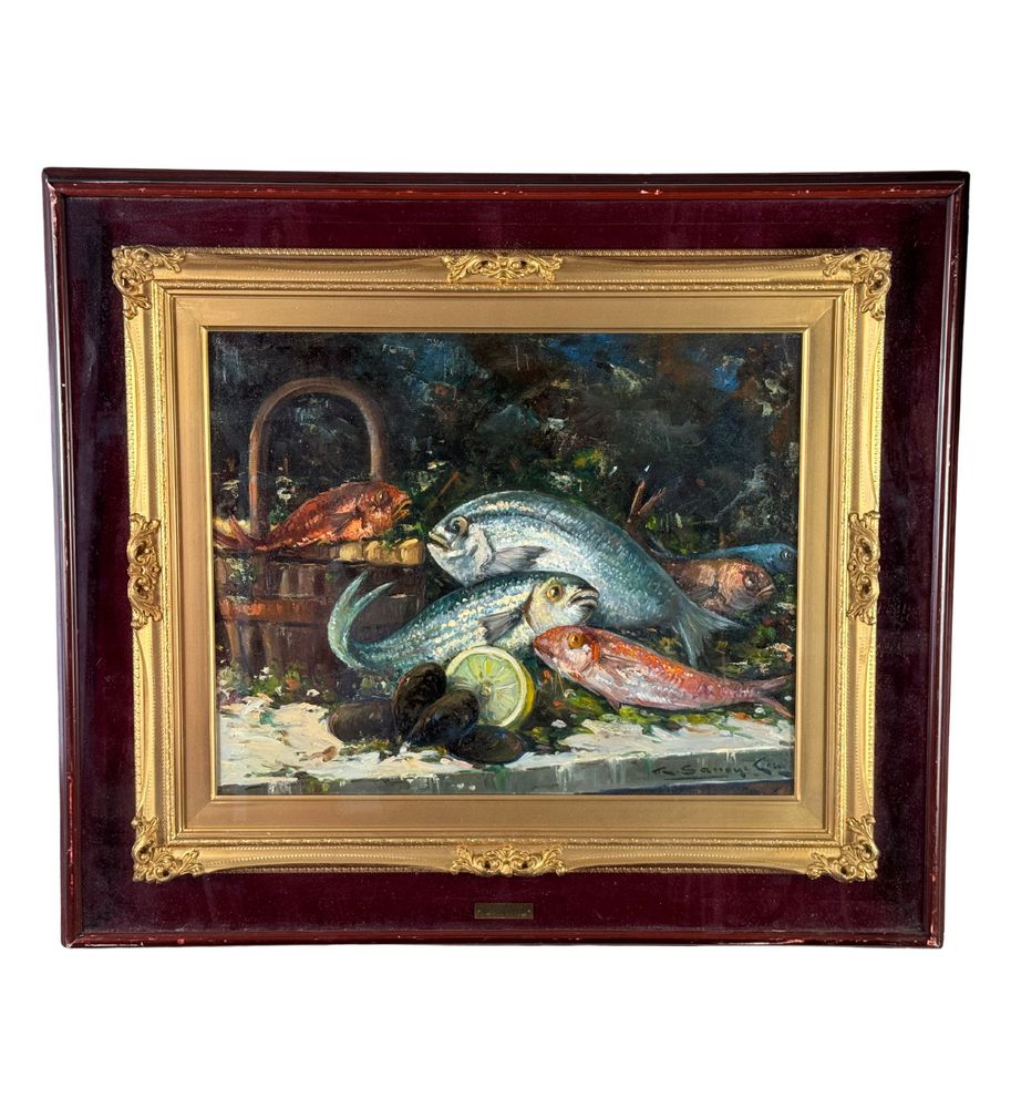 Dipinto olio su tela, periodo XX secolo scuola Italiana, raffigurante Natura morta. Dimensioni compreso cornice: 75x65 cm. Dimensioni interno cornice: 50x40 cm.Reca firma in basso a destra Sassone Corsi. Opera in buone condizioni.