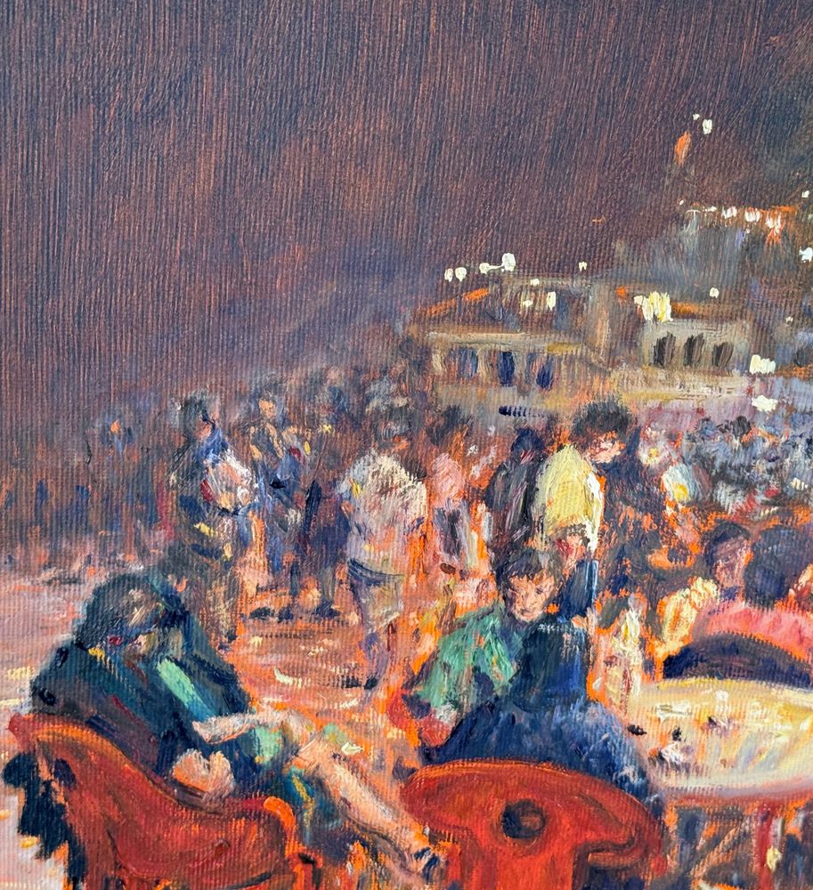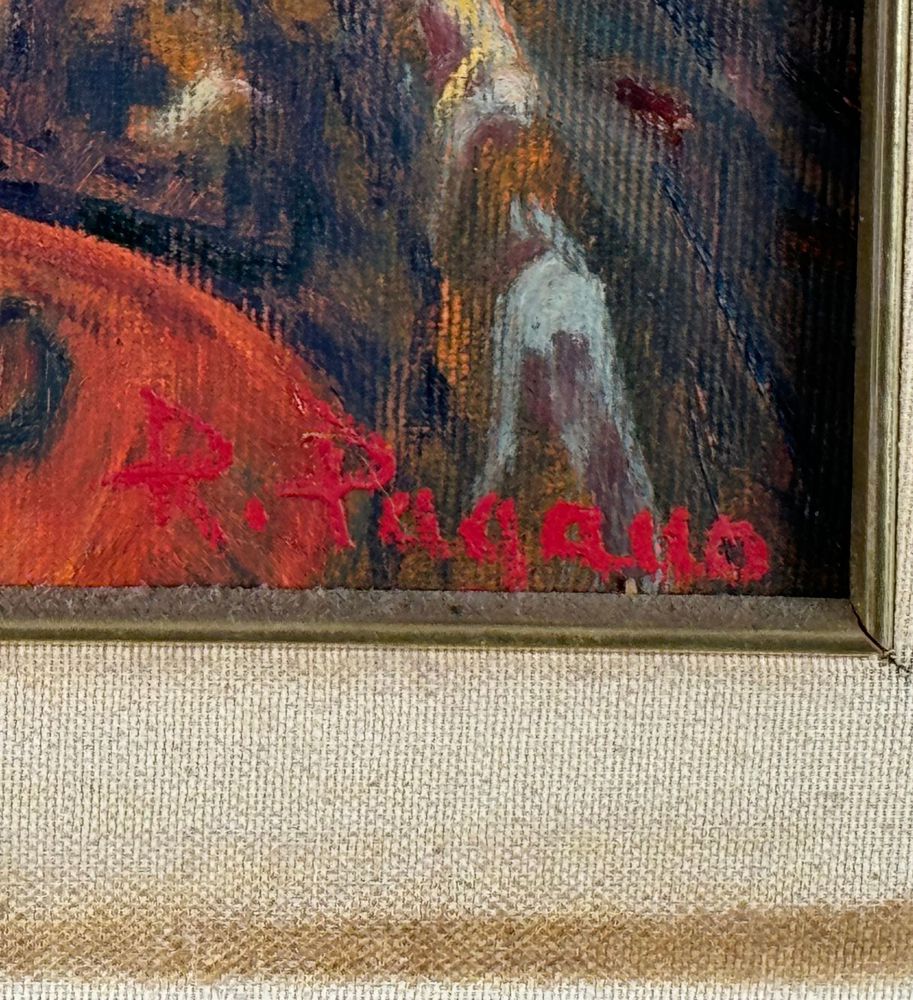 Dipinto olio su tela, periodo XX secolo scuola Italiana, raffigurante "Allo Snack bar (Diamante)". Dimensioni compreso cornice: 60x50 cm. Dimensioni interno cornice: 40x30 cm. Reca firma in basso a destra e autentica sul retro Roberto Pagano. Opera in buone condizioni.