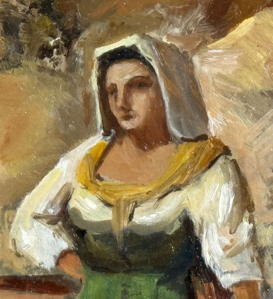 Dipinto olio su tela, periodo XIX/XX secolo scuola Italiana, raffigurante Personaggi alla fontana. Dimensioni compreso cornice: 67x45 cm. Dimensioni interno cornice: 46x24 cm. Da artista anonimo. Opera in buone condizioni.