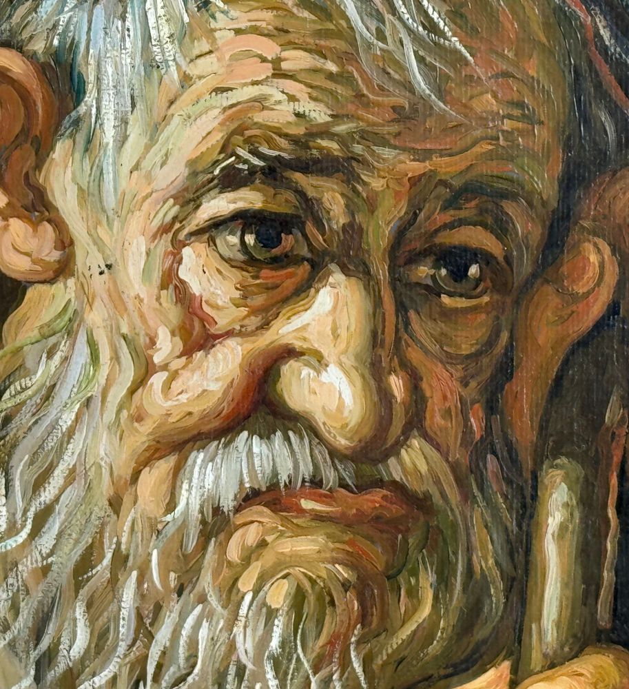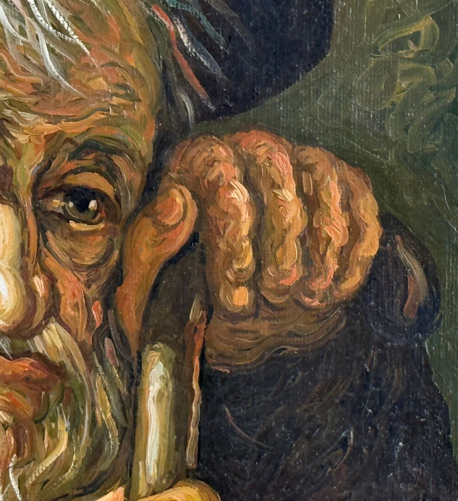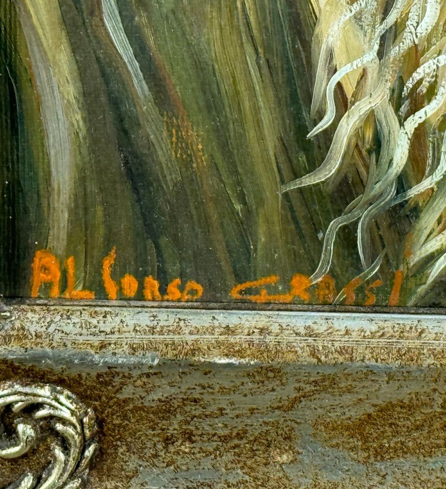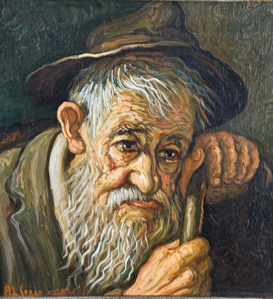 Dipinto olio su tela applicata su tavola, periodo XX secolo scuola Italiana, raffigurante Ritratto di uomo con barba. Dimensioni compreso cornice: 41x41 cm. Dimensioni interno cornice: 30x30 cm. Reca firma in basso a sinistra e autentica sul retro Alfonso Grassi. Opera in buone condizioni.