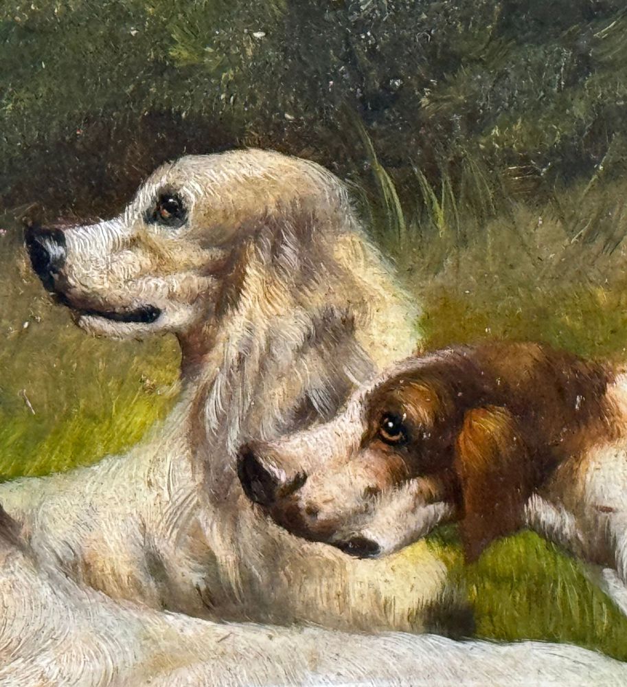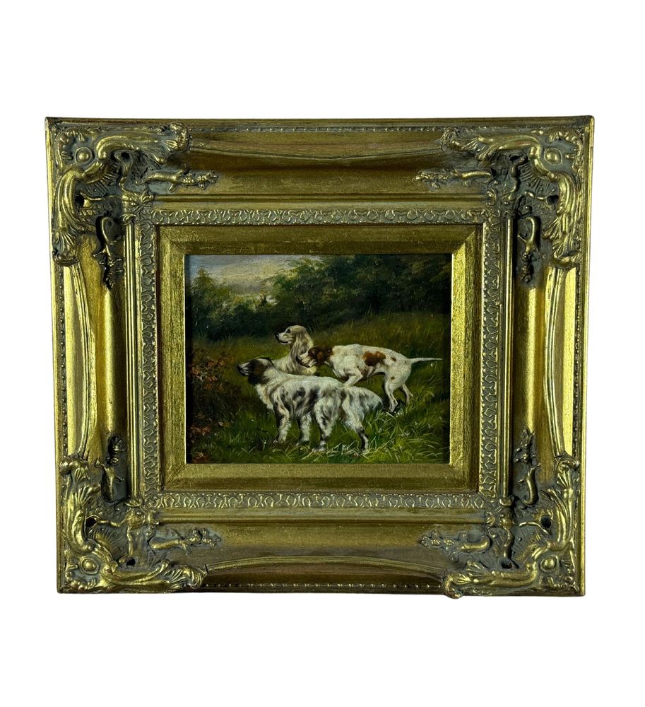 Dipinto olio su tavola, periodo XX secolo scuola Italiana, raffigurante Cani. Dimensioni compreso cornice: 48x43 cm. Dimensioni interno cornice: 25x20 cm. Artista anonimo. Opera in buone condizioni.