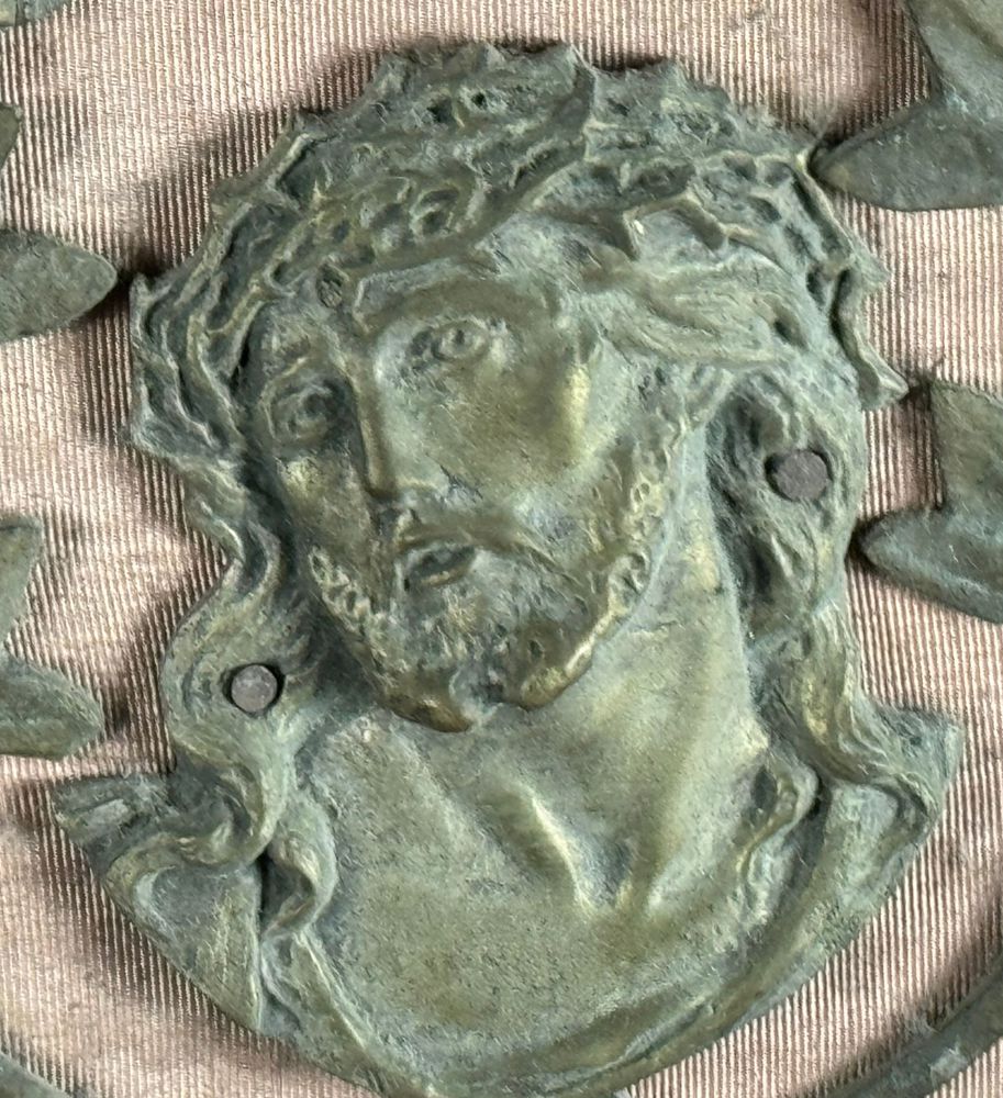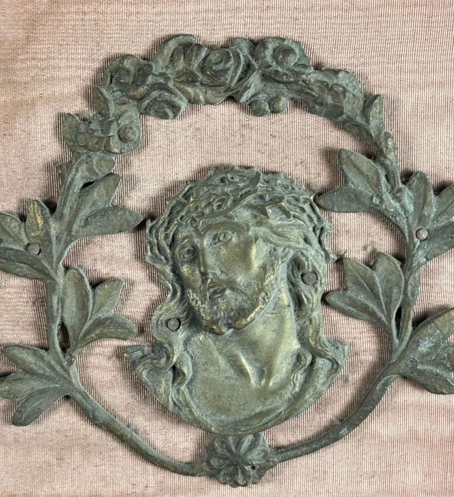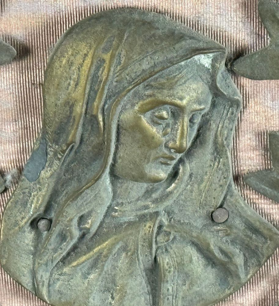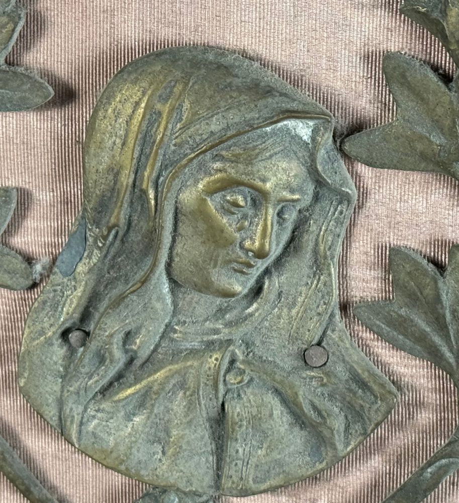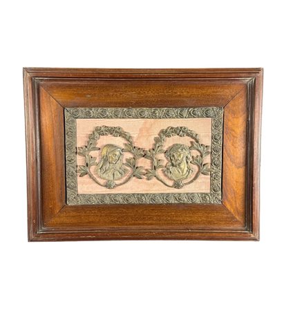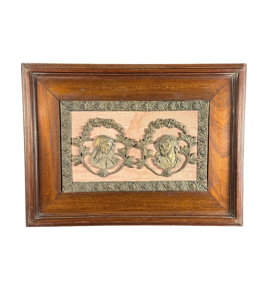 Scultura in bronzo, periodo XIX/XX secolo raffiguranti La Vergine Maria e Cristo accerchiati da rose. Dimensioni compreso cornice: 61x45 cm. Dimensioni interno cornice: 41x25 cm. Scultura in ottime condizioni.