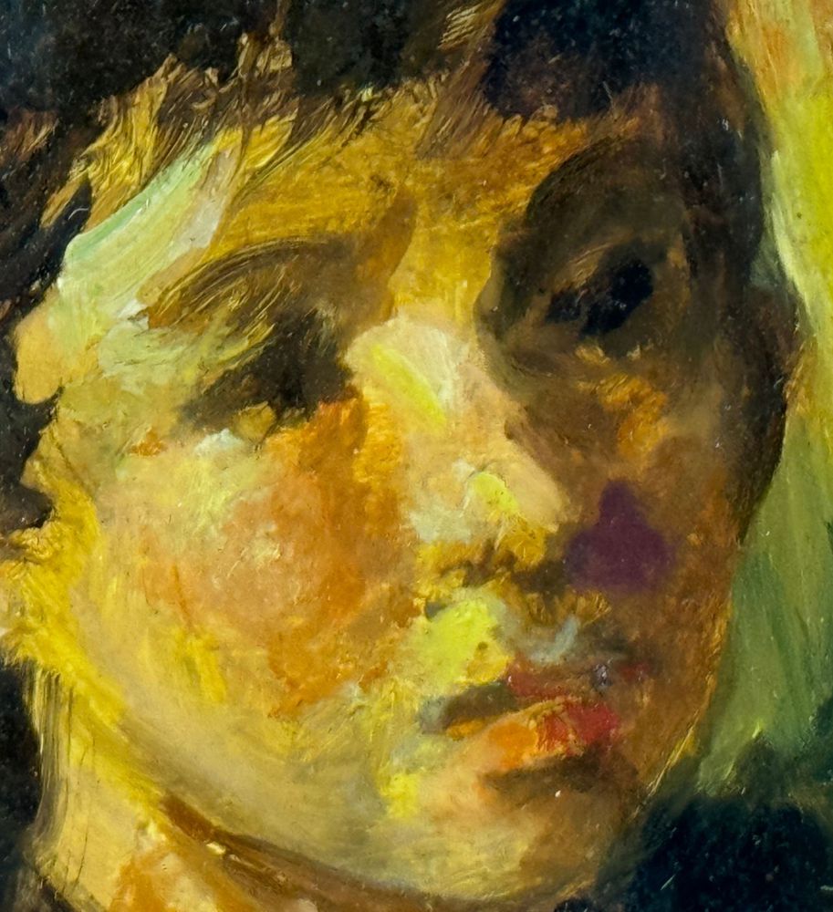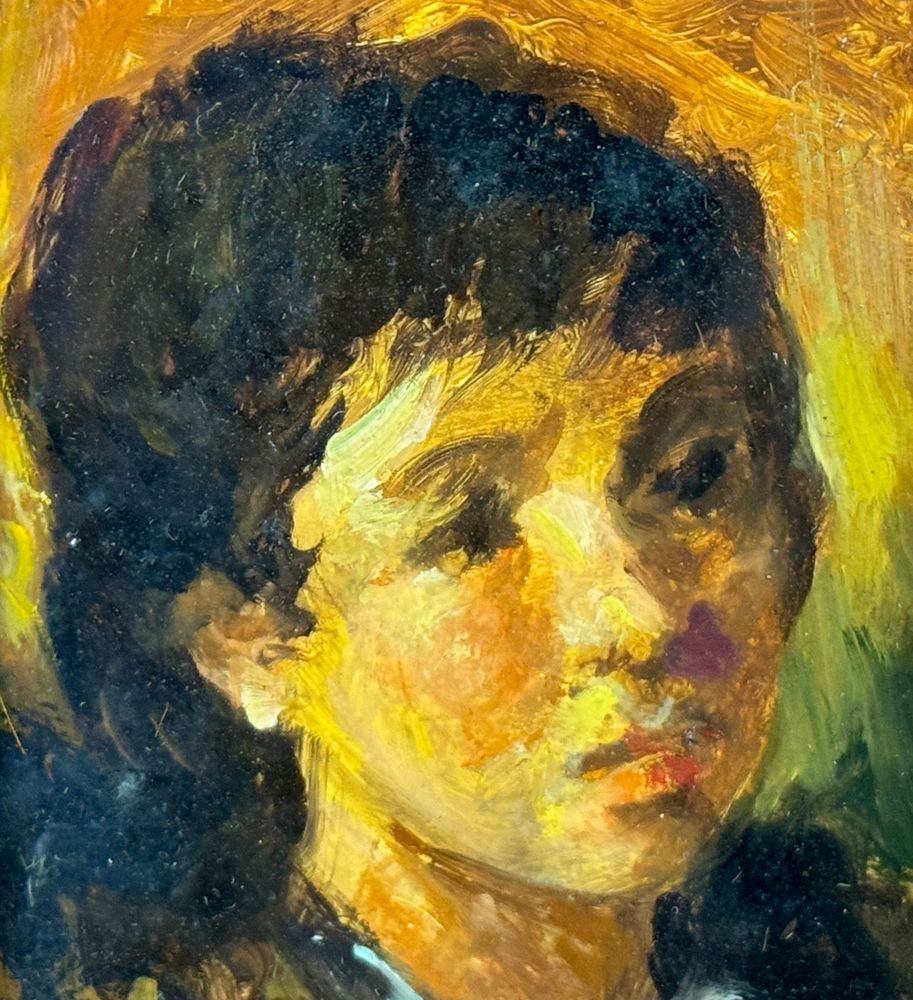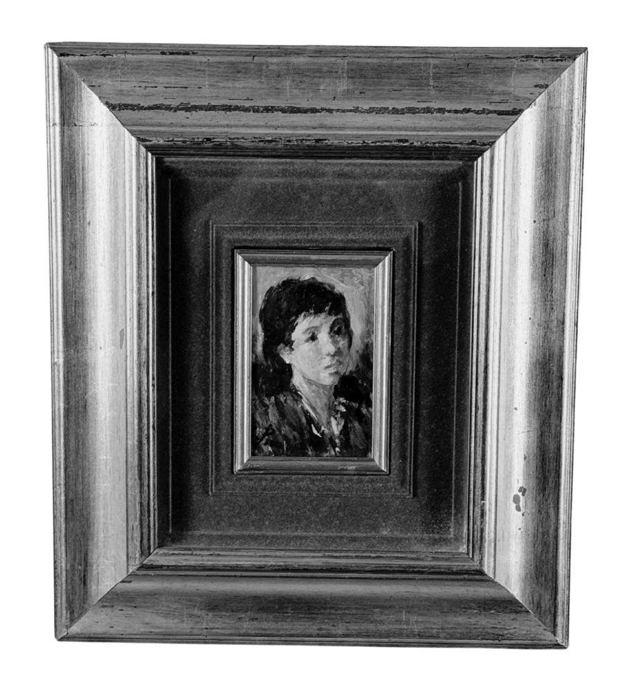 Piccolo dipinto olio su tavola, periodo XX secolo scuola Italiana, raffigurante Ritratto di donna. Dimensioni compreso cornice: 36x42 cm. Dimensioni interno cornice: 9x13 cm. Reca firma in basso a sinistra artista non identificato. Opera in buone condizioni.