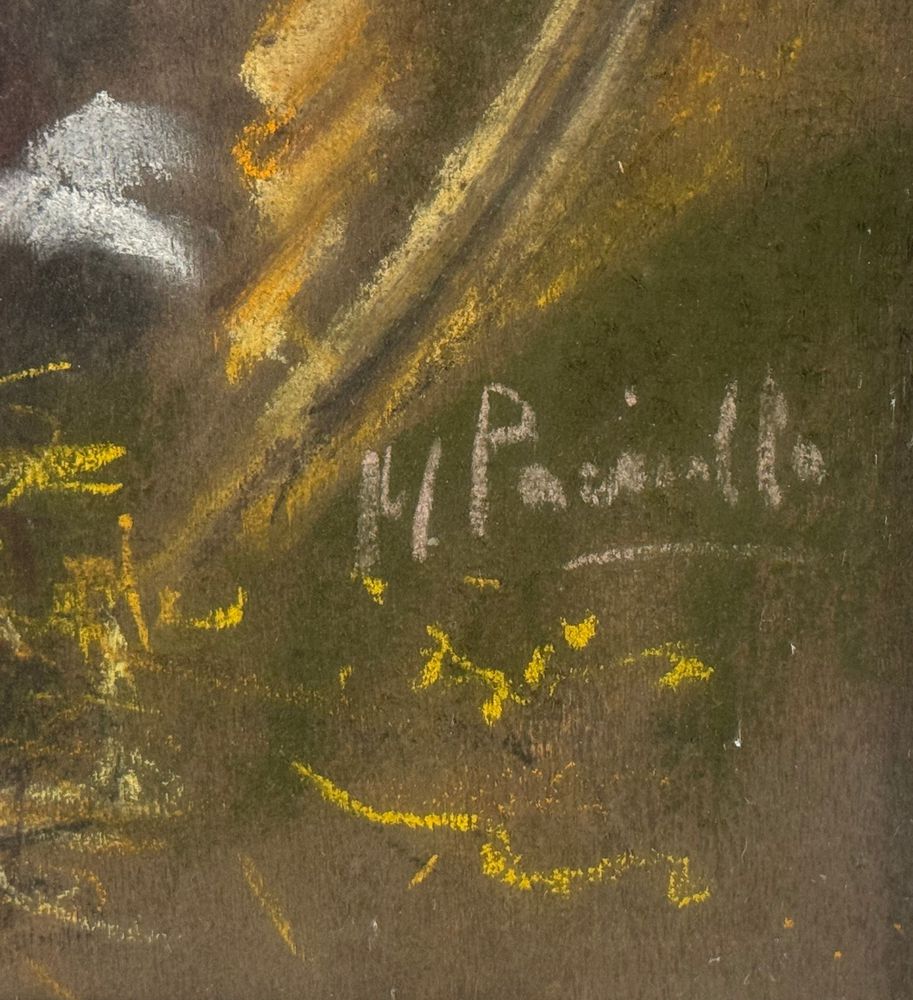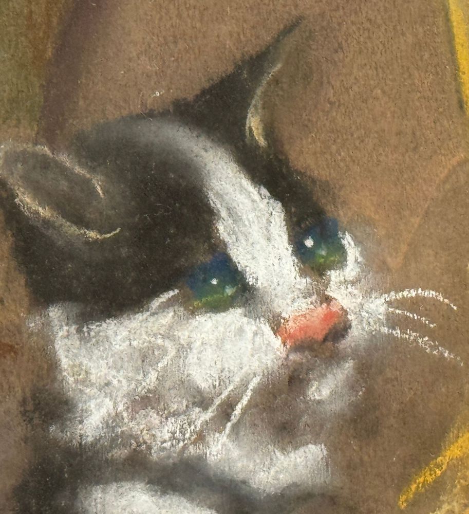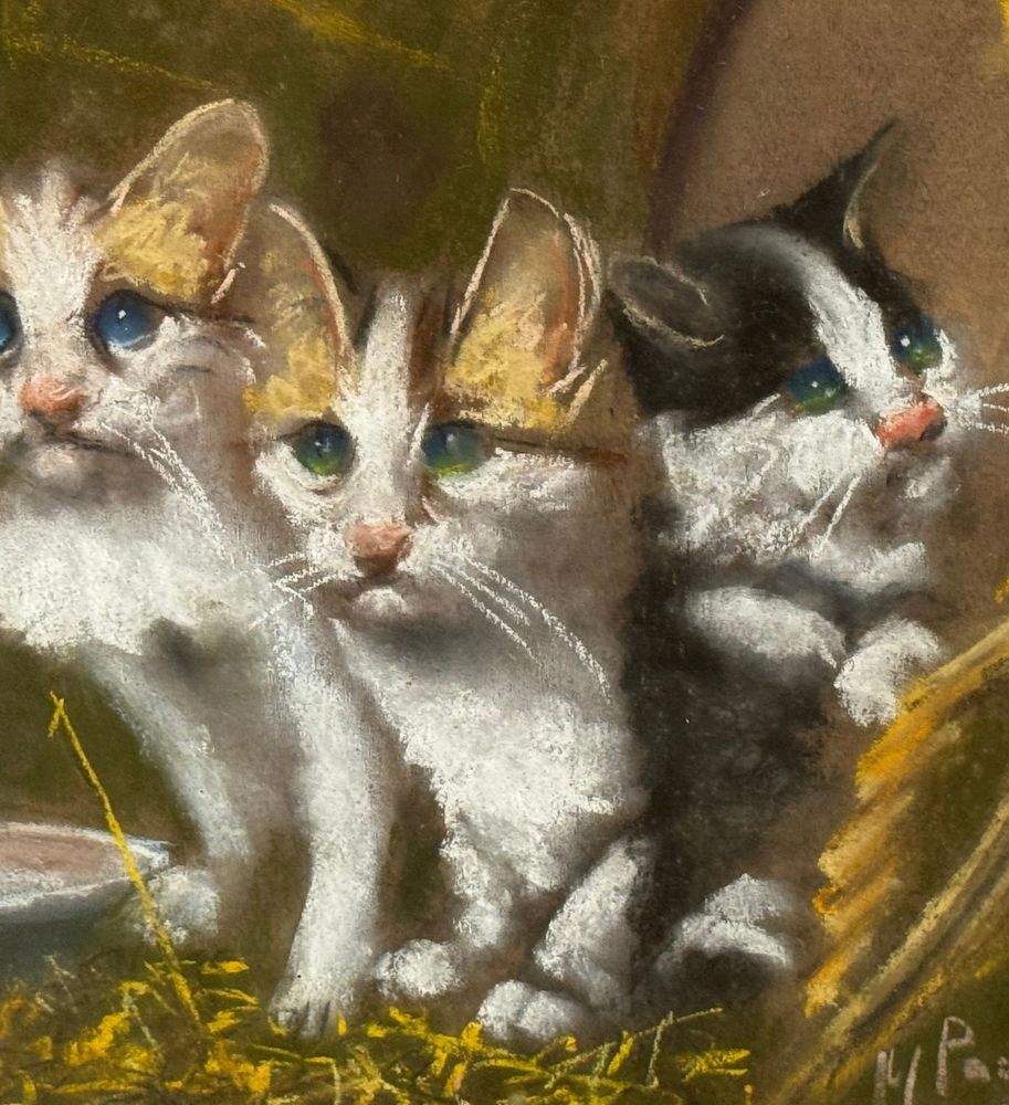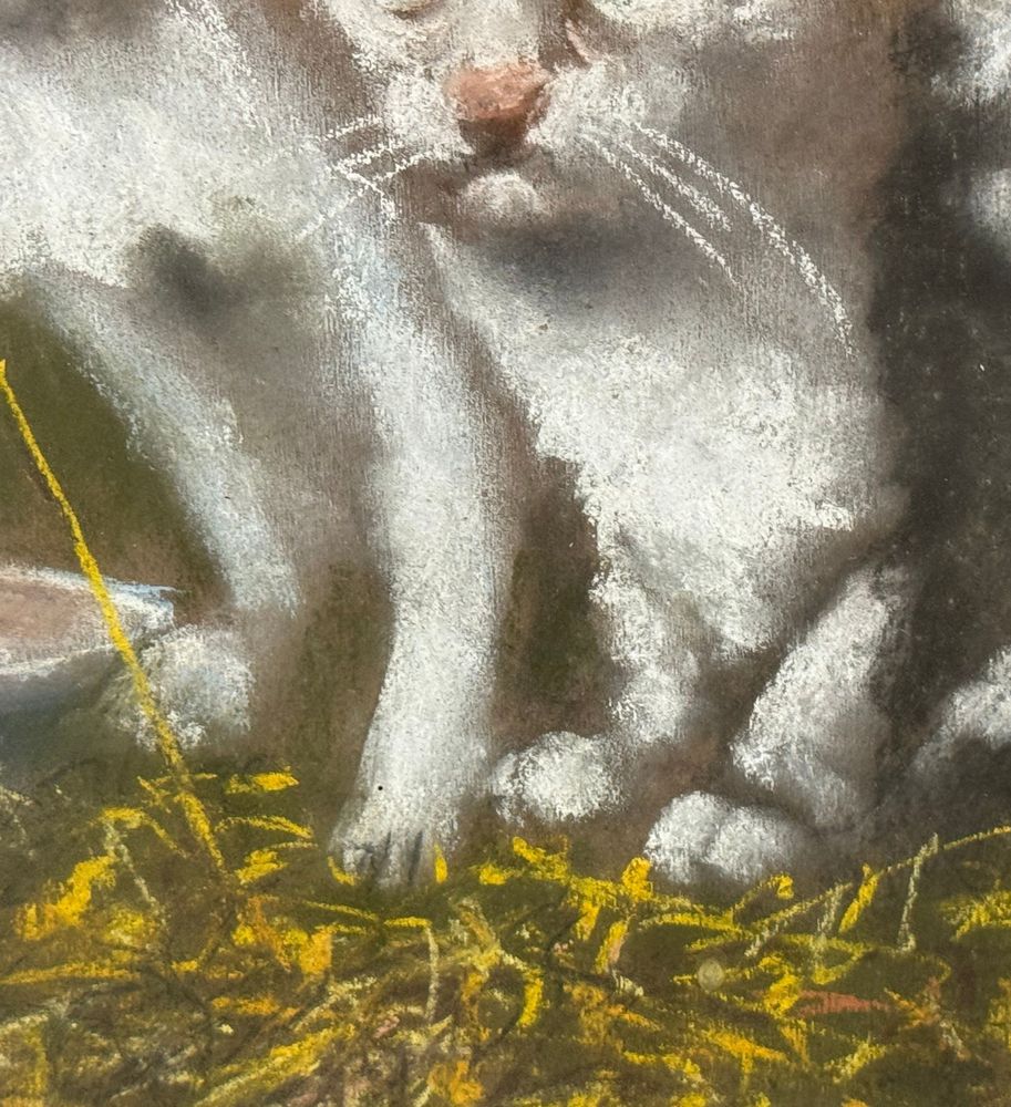 Tecnica mista su tavola, periodo XX secolo scuola Italiana, raffigurante Gattini. Dimensioni compreso cornice: 52x66 cm. Dimensioni interno cornice: 40x50 cm. Reca firma in basso a destra Paciullo. Opera in buone condizioni.