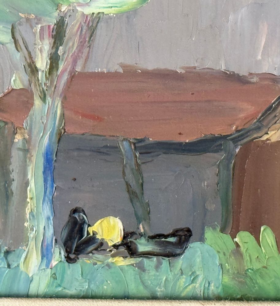 Dipinto olio su pannello, periodo XX secolo scuola Italiana, raffigurante Paesaggio con dimora. Dimensioni compreso cornice: 71x60 cm. Dimensioni interno cornice: 43x53 cm. Artista anonimo. Opera in buone condizioni.