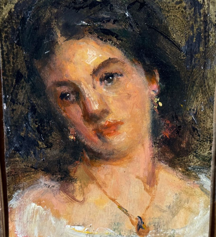 Dipinto olio su cartoncino, periodo XX secolo scuola Italiana, raffigurante Ritratto di donna. Dimensioni compreso cornice: 22x27 cm. Dimensioni interno cornice: 14x20 cm. Artista anonimo. Opera in buone condizioni con lievi segni di vissuto come da foto allegate.