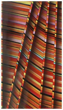FERDINANDO COPPOLA Viareggio 1945 In rosso T.m., aerografo e collage su cartone accoppiati a tavola 45 x 25. Firma in b. a d.; sul verso misure, firma e titolo + timbri studio dell’artista. Autentica dell’autore su foto in esecuzione.