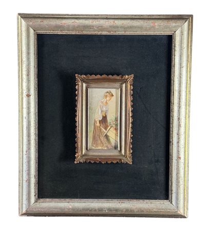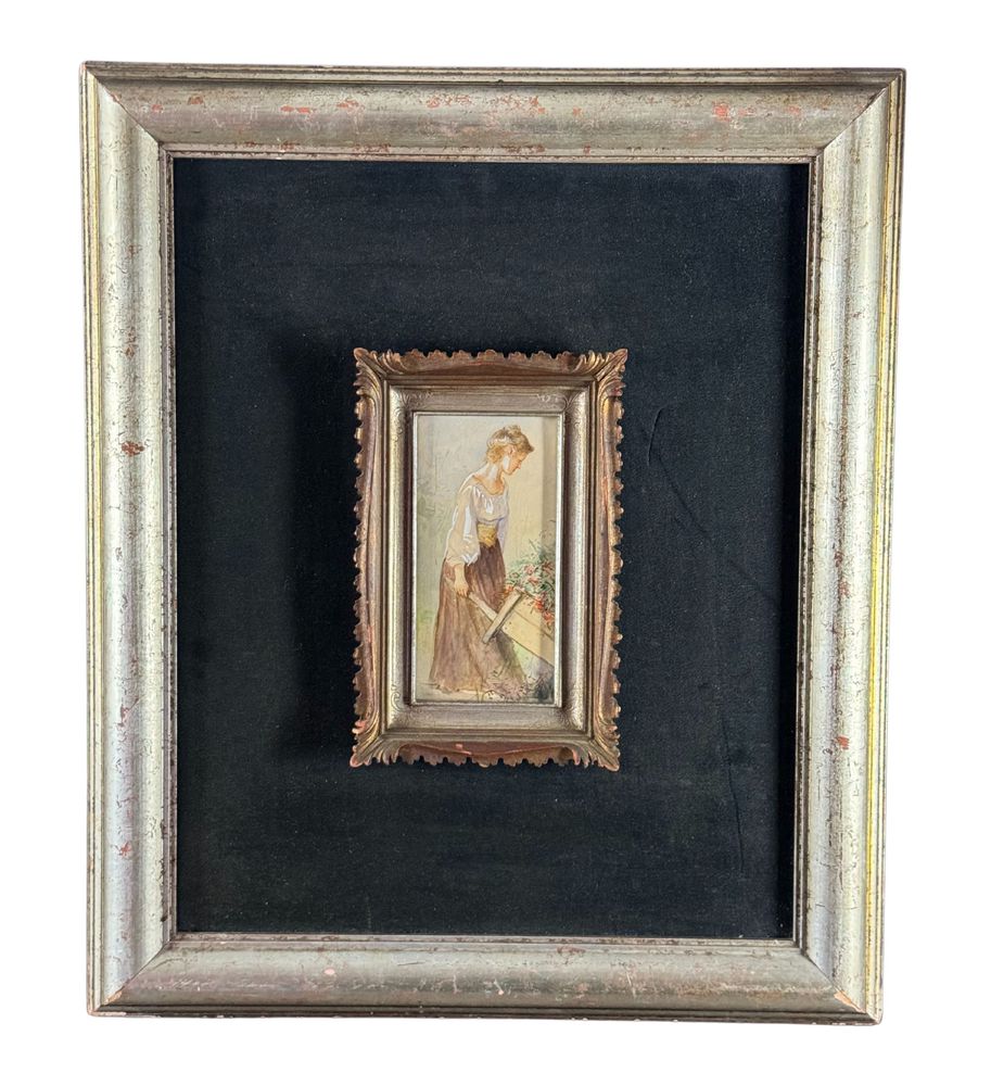 Acquerello su carta, periodo XX secolo scuola Italiana, raffigurante La venditrice di fiori. Dimensioni compreso cornice: 58x49 cm. Dimensioni interno cornice: 18x10 cm. Artista anonimo. Opera in buone condizioni.
