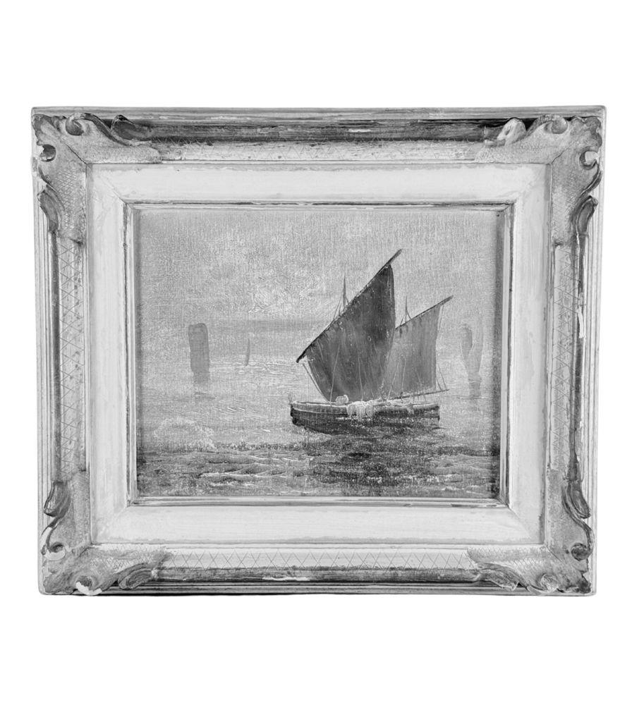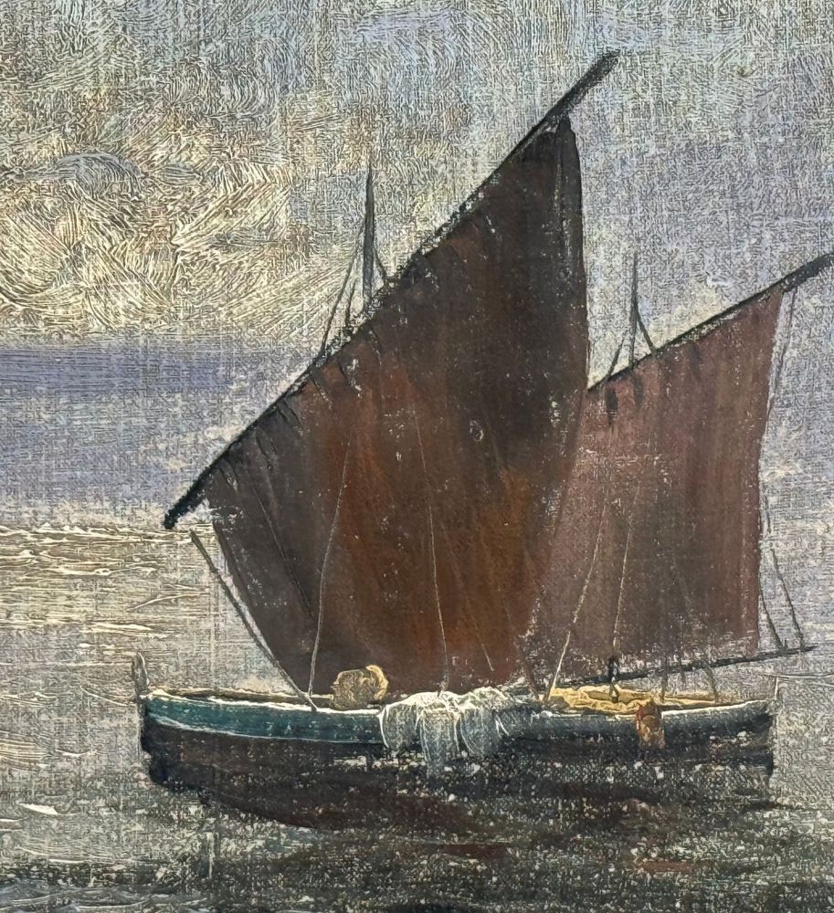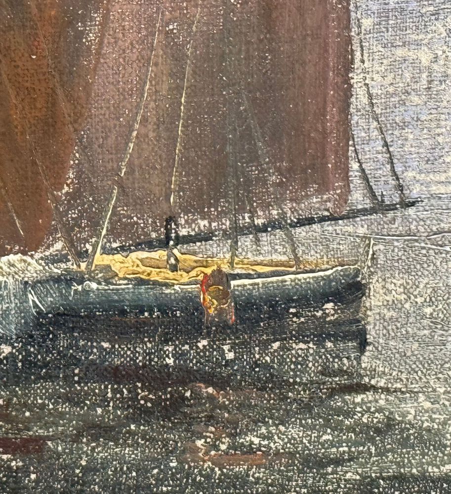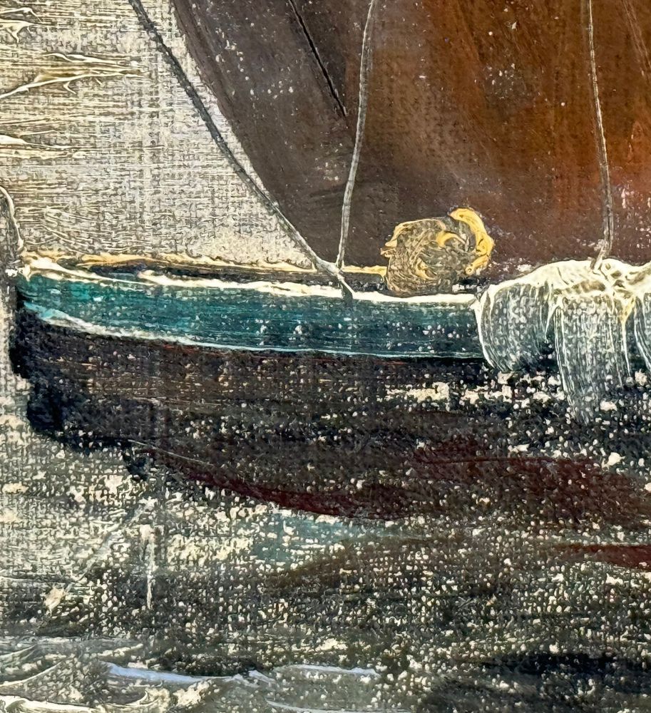 Dipinto olio su tela applicata su cartoncino, periodo XX secolo scuola Italiana, raffigurante Scorcio di marina napoletana. Dimensioni compreso cornice: 44x39 cm. Dimensioni interno cornice: 30x24 cm. Artista anonimo. Opera in buone condizioni con lievi segni di vissuto come da foto allegate.