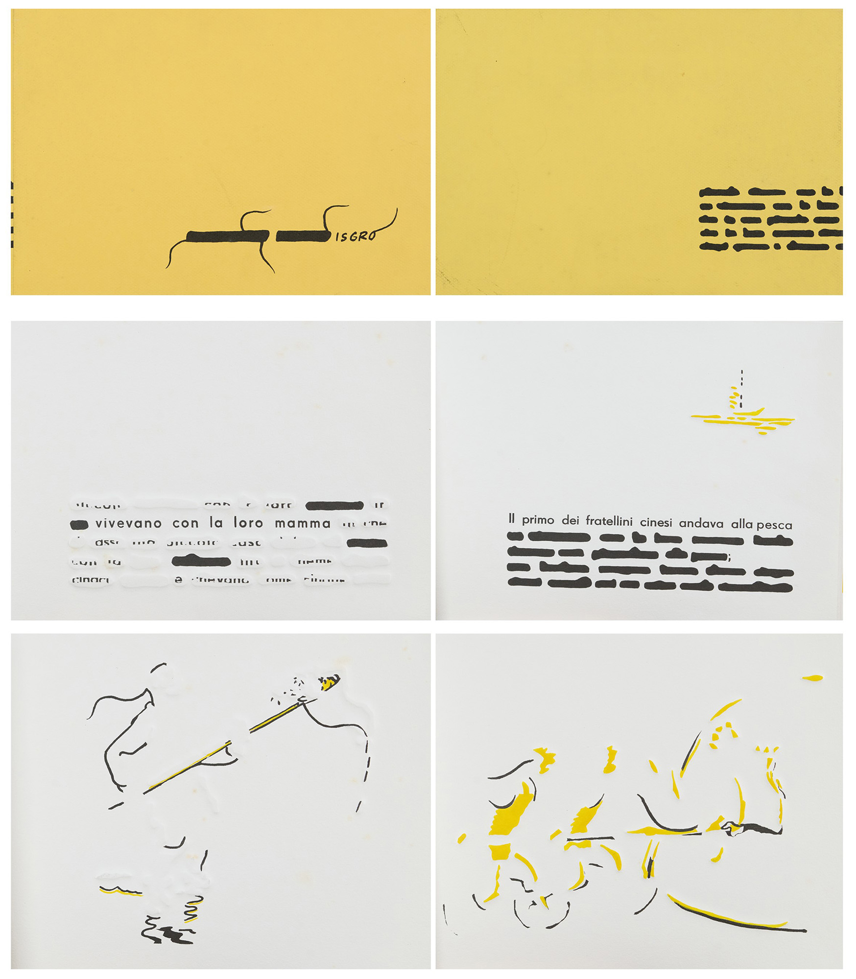 I cinque Isgrò è opera originale realizzata da Emilio Isgrò per l’edizione 2006 dei Cento Amici del Libro. Giorgio Upiglio e Monia Pavone hanno stampato su carta Alcantara con torchio litografico il nero, con il torchio calcografico i rilievi da matrici di legno e ottone e hanno pennellato il giallo. La legatura e la custodia sono di Ruggero Rigoldi. Il testo Cinque per venticinque, scritto dallo stesso artista, fa parte dell’edizione che consta di cento esemplari “ad personam” riservati ai Soci e trenta numerati da I a XXX. Il colophon di ogni esemplare è stato firmato da Emilio Isgrò il 19 marzo 2007 in Milano.