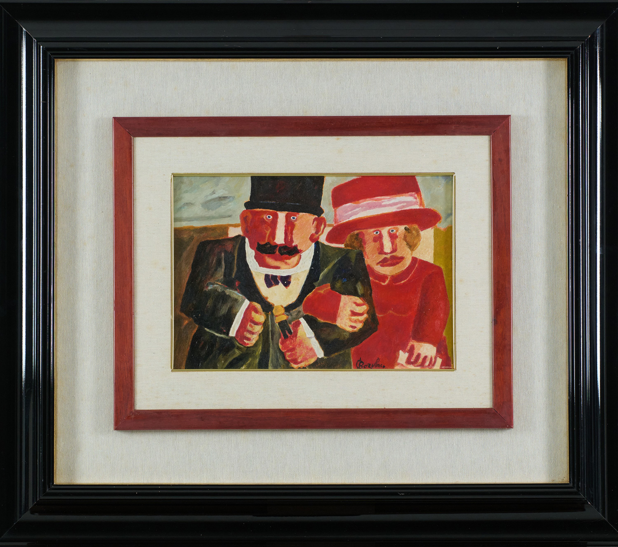 Franz Borghese (Roma, 1941 - Roma, 2005) Coniugi Olio su tela cm. 24x33,5...