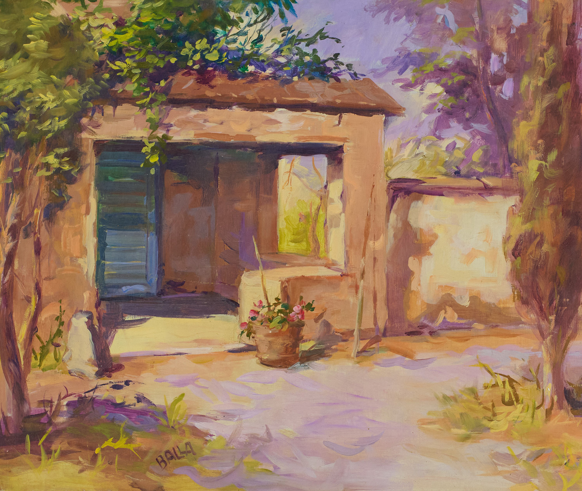 Giacomo Balla (Torino, 1871 - Roma, 1958) In campagna, 1949 Olio su tavola...