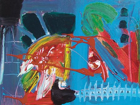 PAUL KOSTABI Whittier (USA) 1962 The whimsical wolcott 2003 Olio su tela 45,5 x 61. Firma in b. a d.; sul verso firme, titolo e data. Pubbl.: “Paul Kostabi” cat. mostra a cura di Silvio Guarasci, Saletta Viviani, Pisa, 1 – 31 Dicembre 2007, p.61.