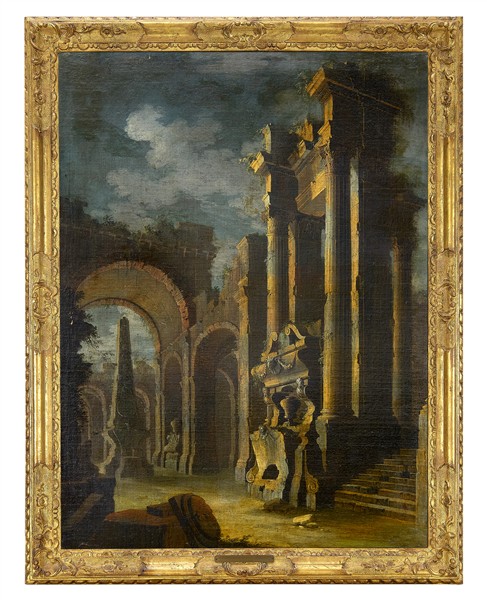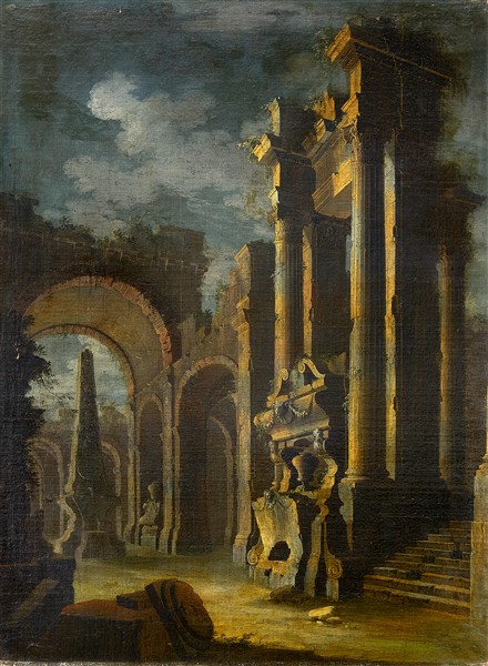 LEONARDO COCCORANTE (attr.) "Capriccio architettonico" olio su tela (cm 76x102)