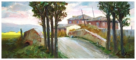 GIO BATTA LEPORI Livorno 1911 – 2002 Pioggia 1970 Olio su tavola 25,5 x 56. Firma in b. a d.; sul verso data + etichetta studio dell’artista con firma e titolo.