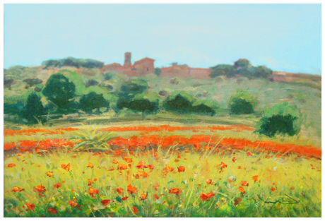 GIORGIO LUXARDO Livorno 1937 Papaveri (Lorenzana) Olio su tela 30 x 40. Firma in b. a d.; sul verso titolo, località e firma.