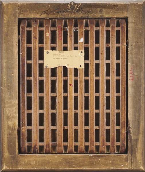 on the reverse, there is an old label with provenance: "Earl of Warwick 1854 / Dowdswell and Dowdswell"