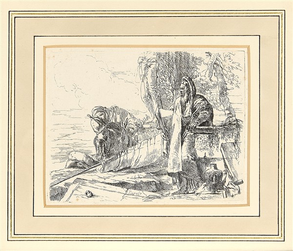 Giambattista Tiepolo "Filosofo in piedi e due figure", dalla serie "Vari Capricc