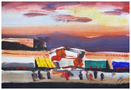 SALVATORE MAGAZZINI Pistoia 1955 Senza titolo Olio su cartone accoppiato a masonite 15,3 x 22,6. Firma in b. a d.