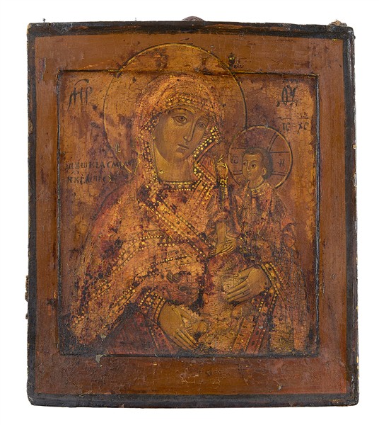 Arte russa, secolo XIX-XX. Icona raffigurante Madonna con Bambino, tempera su t