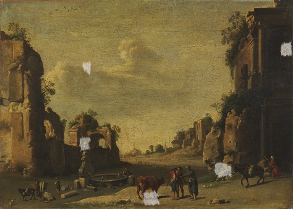 Da Cornelis van Poelenburgh, scuola della fine del secolo XVII "Paesaggio con