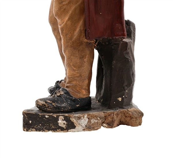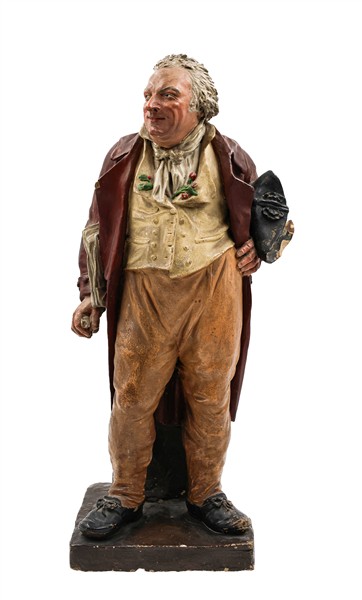 Scultore emiliano, fine secolo XVIII-inizio secolo XIX. Figura caricaturale maschile in terracotta dipinta in policromia (h. cm 49) (difetti e mancanze)