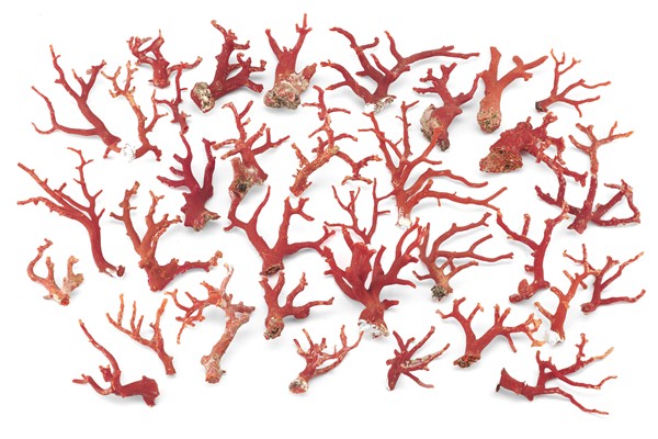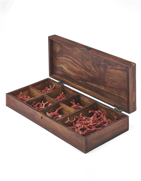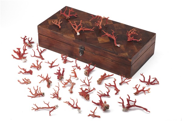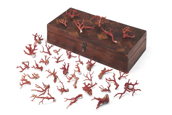 Collezione di numerosi rami di corallo. Secolo XIX (g 425) entro cofanetto in l