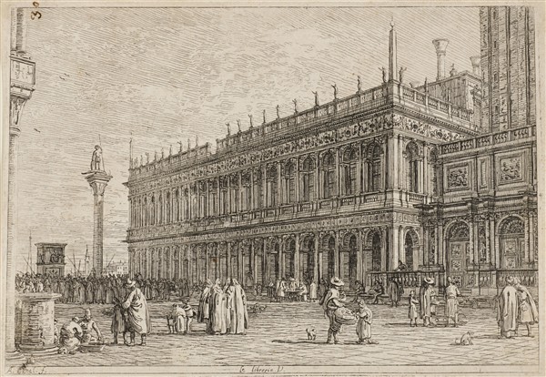 Giovanni Antonio detto il Canaletto Canal "La Libreria V" acquaforte in cornice