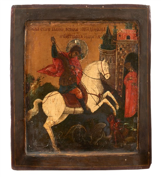 Arte russa, secolo XVIII. Icona a tempera su tavola raffigurante San Giorgio e