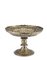 Alzata in argento sbalzato di forma circolare decorata da fiori e frutti entro