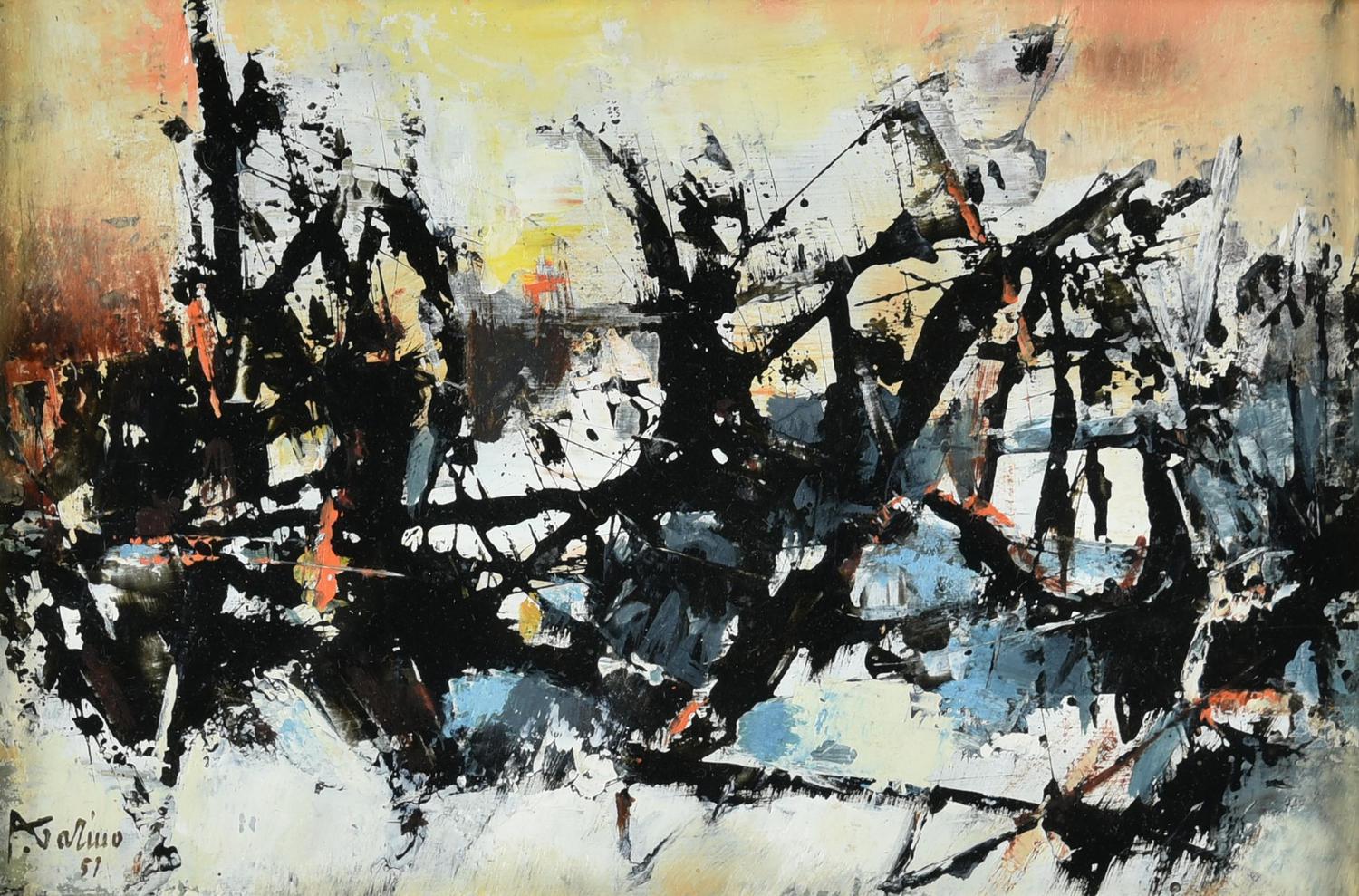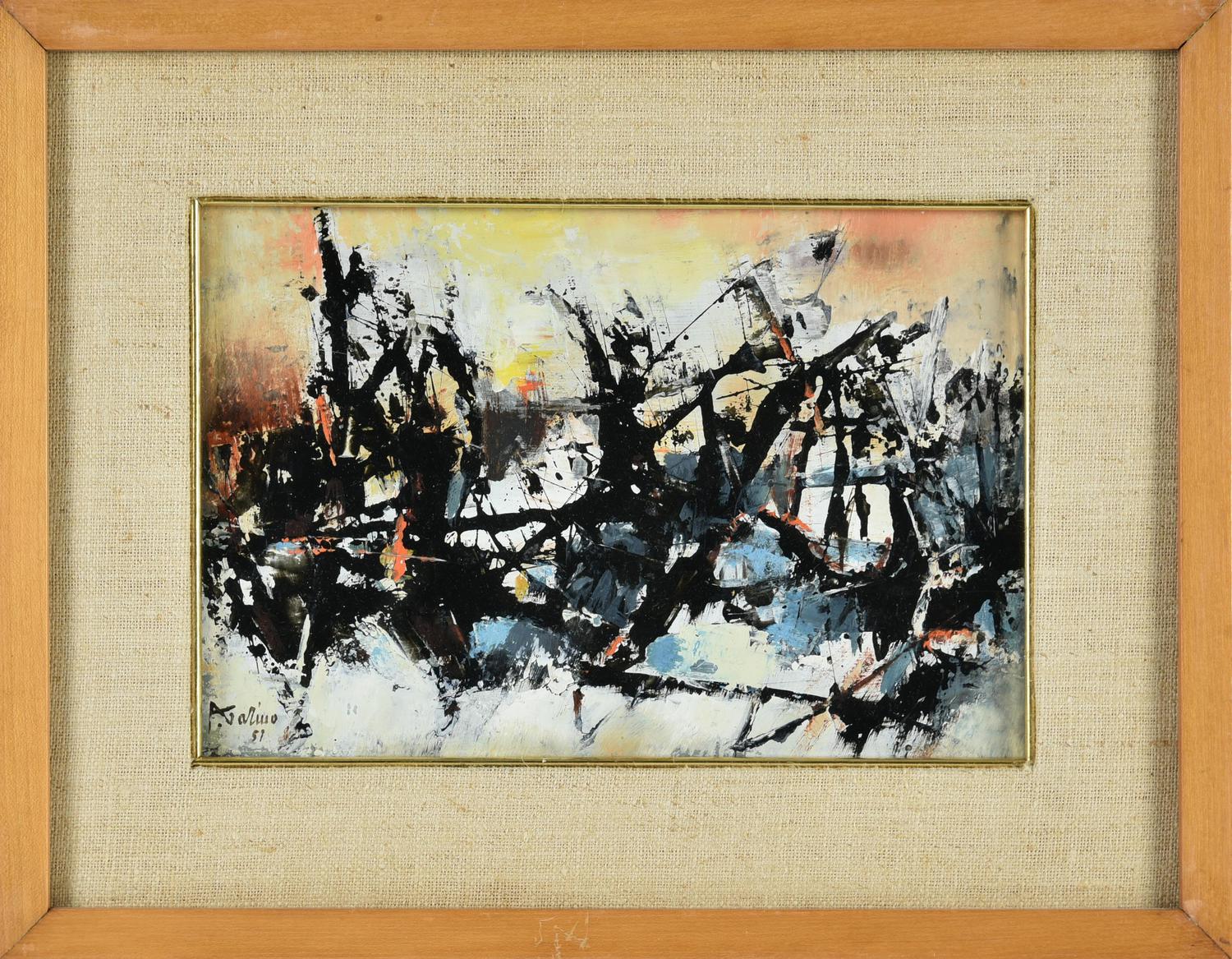 Piero Garino (1922 - 2009) SENZA TITOLO, 1957 olio su tavola, cm 16x24 firma...