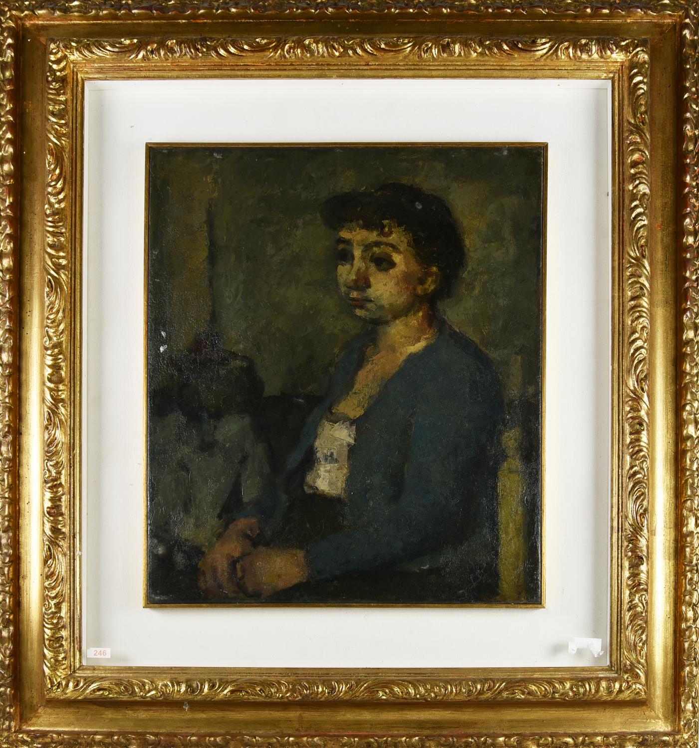 Domenico Cantatore (1906 - 1998) DONNA DAL GIUBBETTO AZZURRO, 1944 olio su tela, cm 58x48,5...