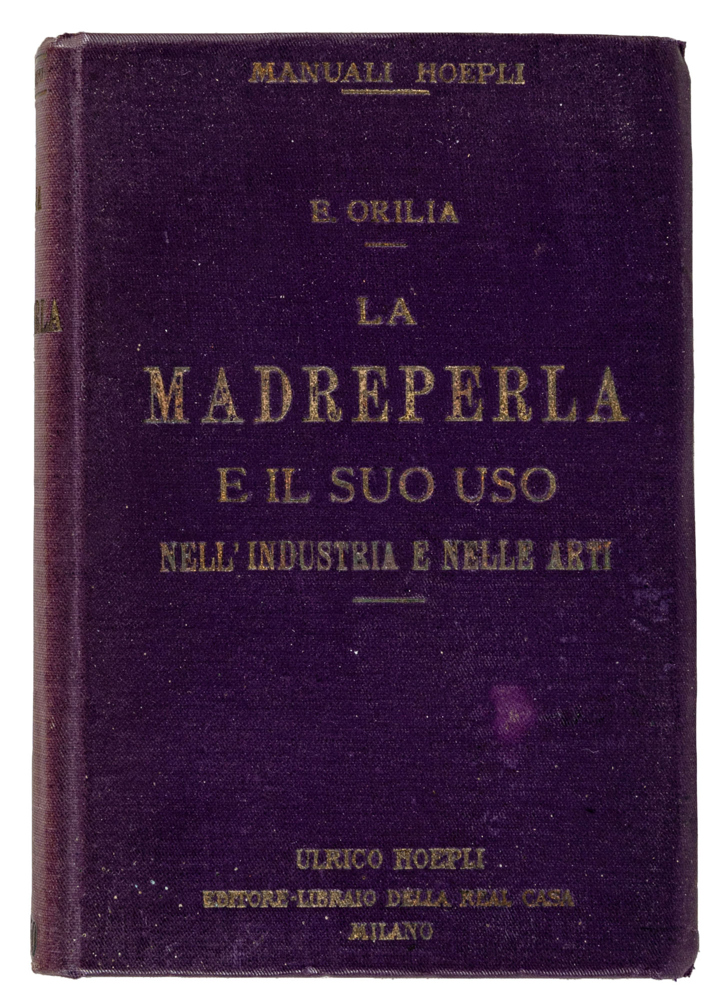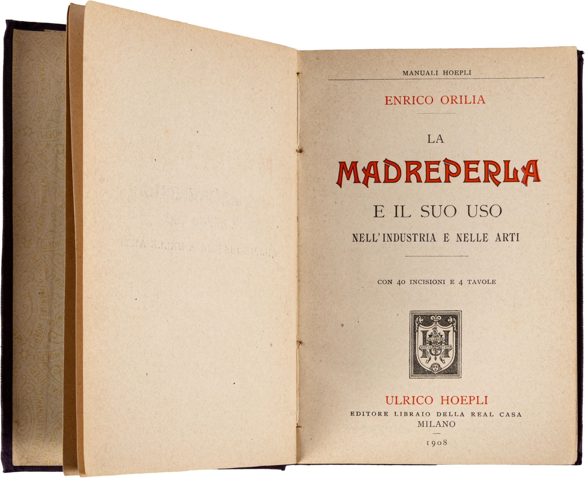 MANUALI HOEPLI - ORLIA E. - LA MADREPERLA1^ ed. 1908Pag. VIII, 258 con 40 figure e 4 tavoleIn 16°Condizioni generali molto buoneBIBLIOGRAFIA:Rif. EMMEACCA Catalogo dei Manuali Hoepli dal 1875 al 1945 pp. 413