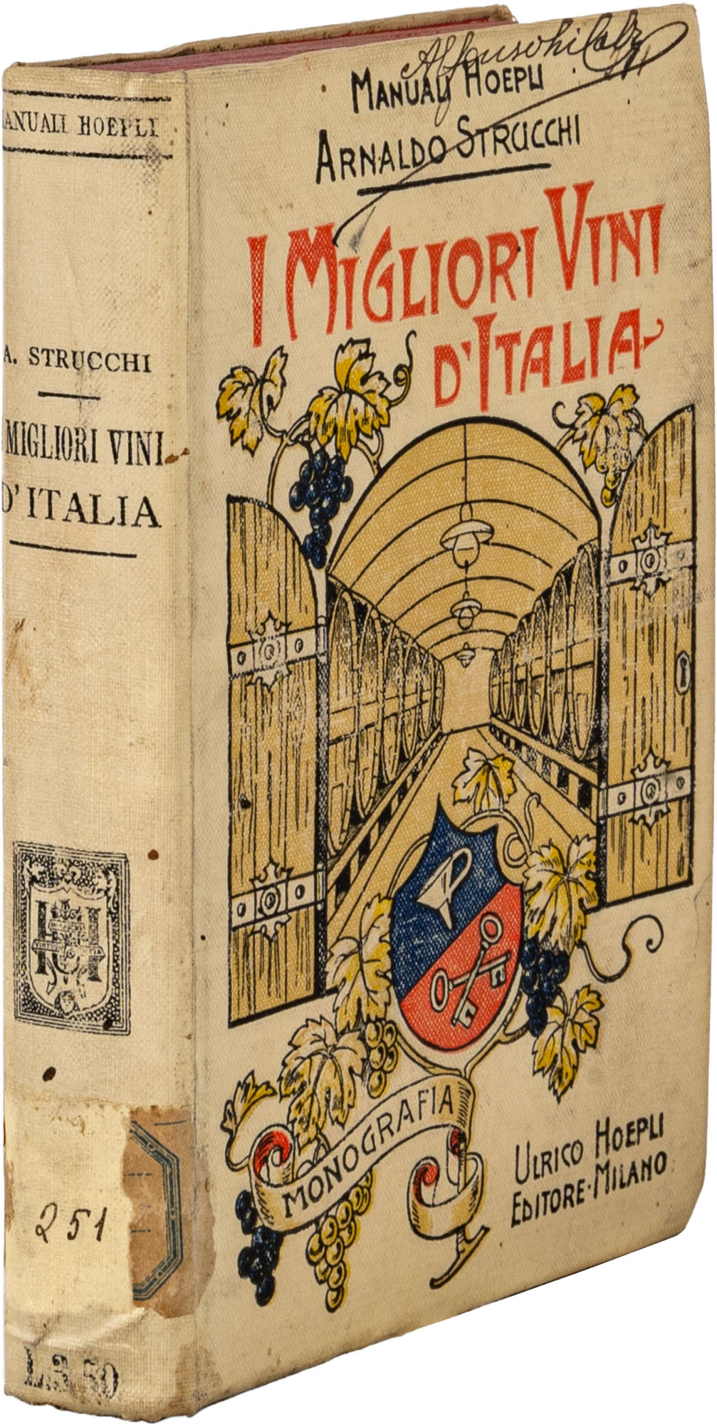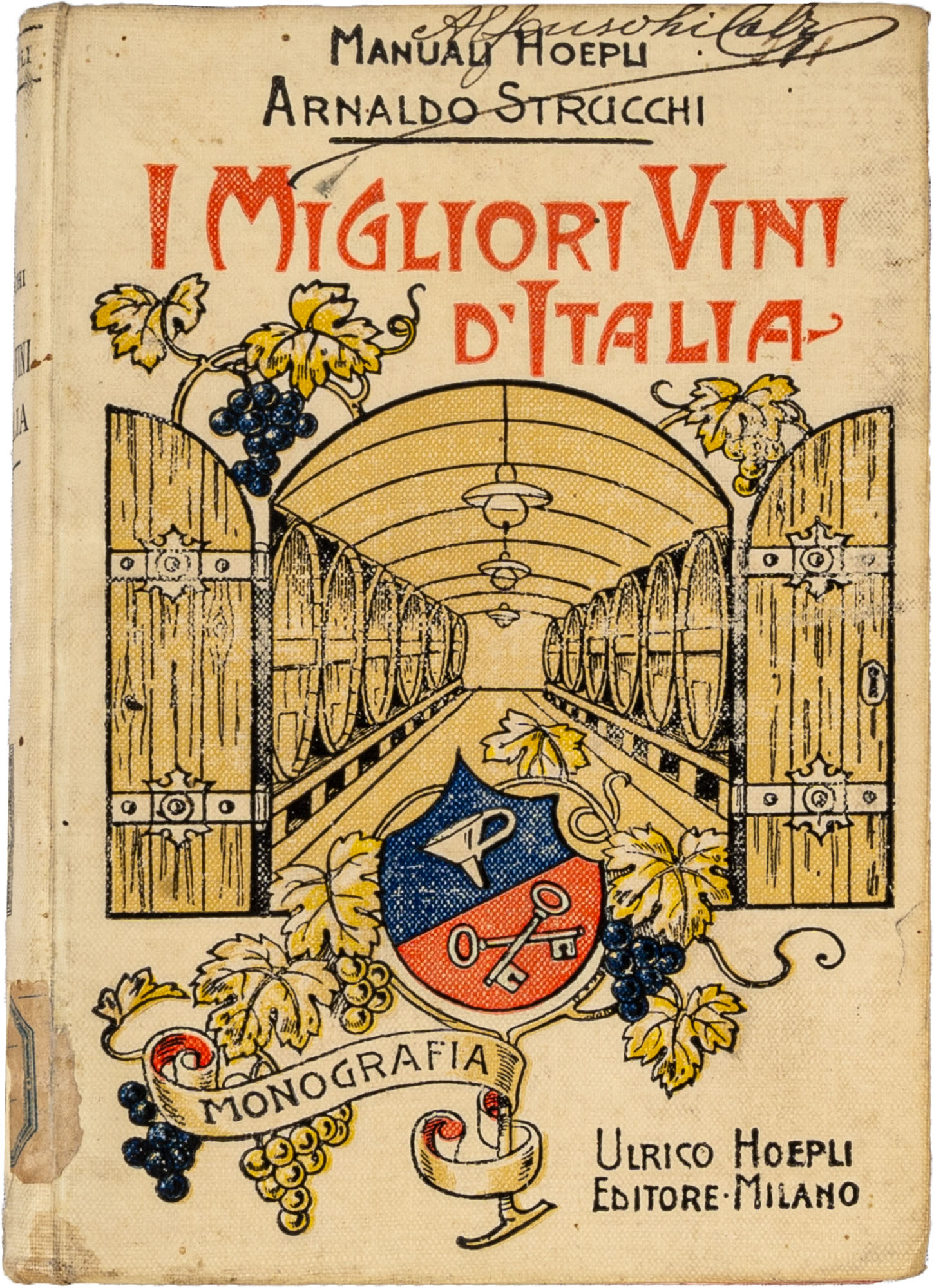 MANUALI HOEPLI - STRUCCHI A. - I MIGLIORI VINI D'ITALIA1^ ed. 1908XIX, 258 Figure 42 e Tavole 7, tagli rossiIn 16°Condizioni generali molto buone; firma di proprietà alienata al piatto anterioreBIBLIOGRAFIA:Rif. Emmeacca, Catalogo dei Manuali Hoepli dal 1875 al 1945 pag. 538
