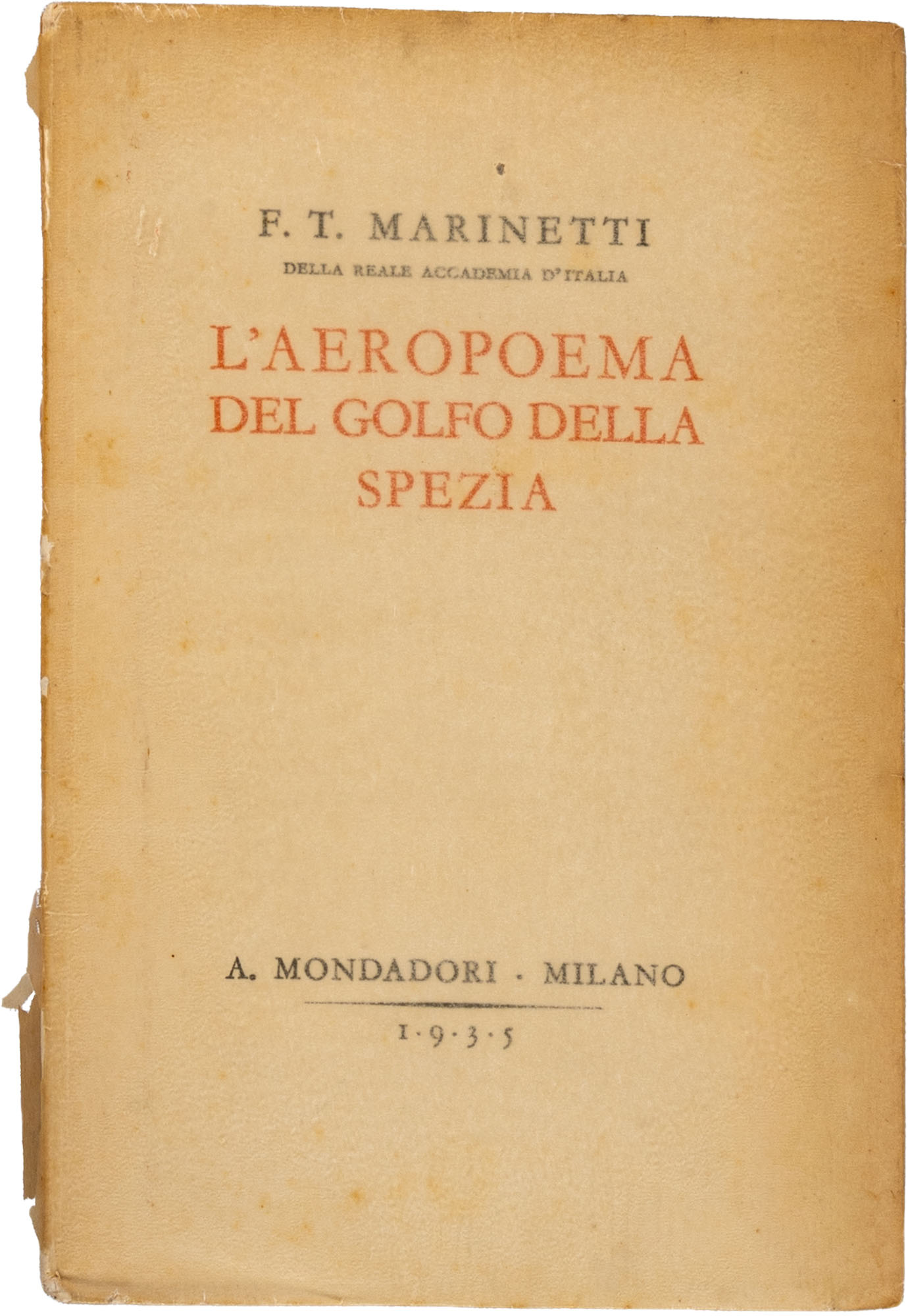 MARINETTI F. TOMMASO - L'AEROPOEMA DEL GOLFO DELLA SPEZIA1^ ed. 1935, MondadoriPag. 127Con dedica e autografo dell'autore sulla prima pagina bianca internaCopertina morbida protetta da velinaIn 16°Condizioni generali molto buone